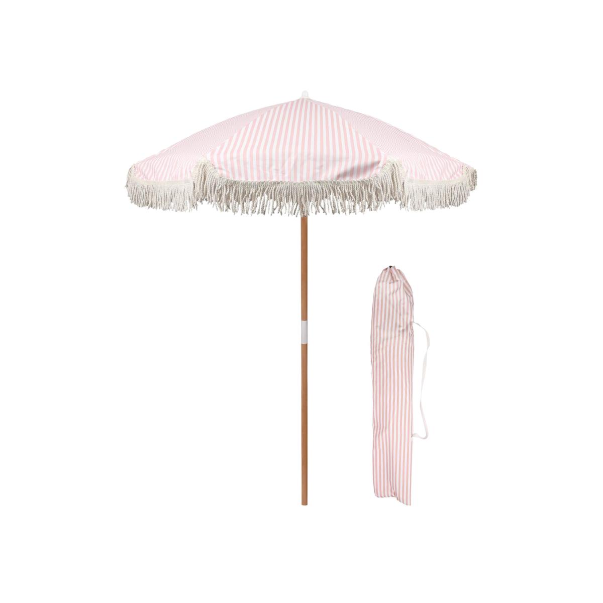Add a touch of trendy Boho elegance to any outdoor space or al fresco gathering with this Wooden Garden Parasol with Fringe from Harbour Housewares. The classic striped polyester canvas offers excellent protection from anything the famous Great British Summer weather might bring, with a water-resistant finish and UPF30 protection against UV radiation. A two-piece wooden pole provides a premium alternative to the more run-of-the-mill metal variety, and features a push-lock system for easy operation. Designed with portability in mind, this parasol comes with a matching carry bag, allowing you to savour that sweet summer sun in safety, style and comfort, wherever you go!