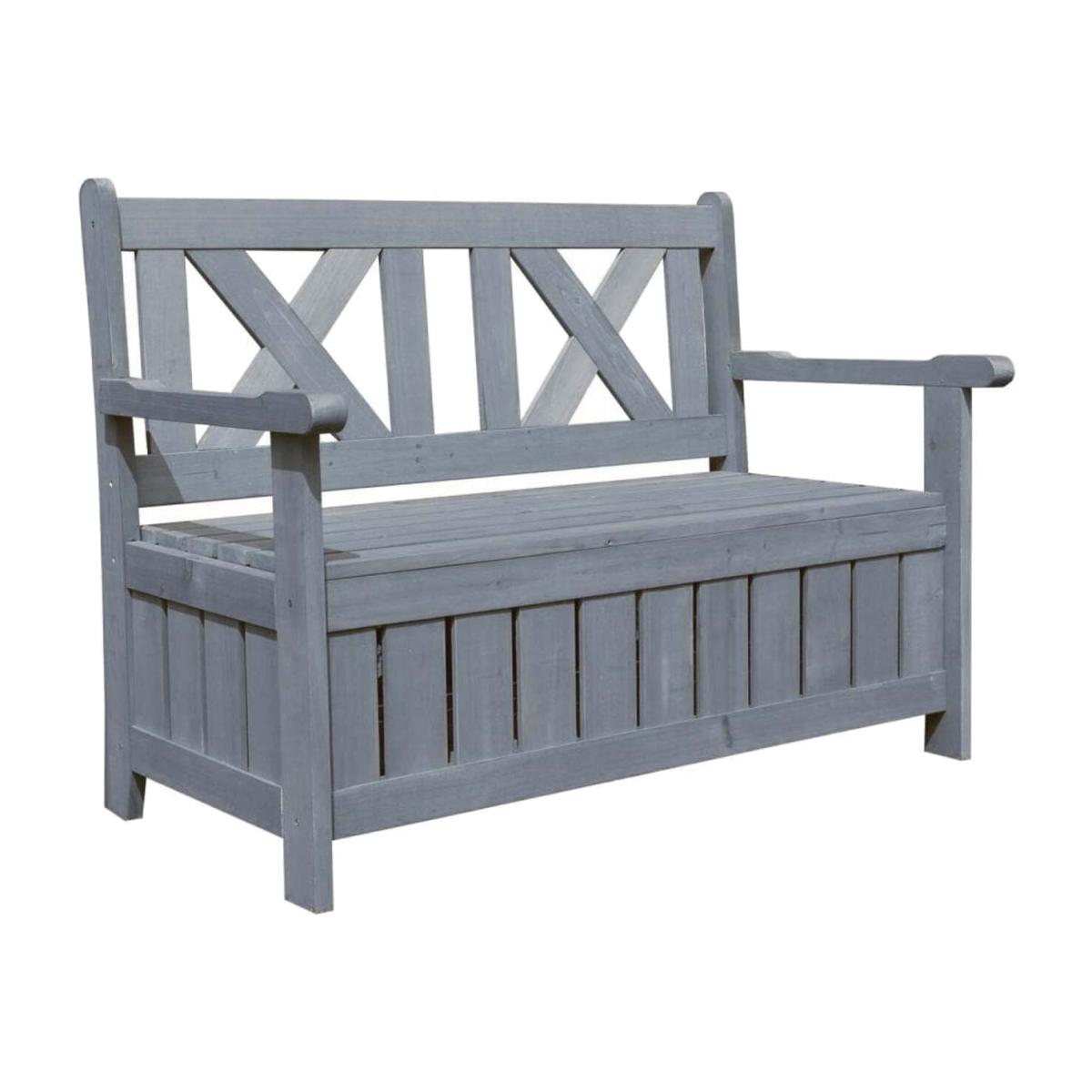 Enhance the traditional garden bench by adding extra functionality with a built-in storage chest underneath the seating. Ideal for storing away bits and bobs such as wellies, children's garden toys, and gardening tools. The Storage Bench features are the ideal Garden seating area, while doubling as handy storage. By offering a comfortable seat for two to relax in the sunshine, this outdoor storage bench effectively utilises the space it occupies. Featuring a rear cross design and constructed from stunning warm-toned wood, the bench is a beautifully classic piece that brings a rural feel to all outdoor spaces, including urban gardens and landscapes. This grey garden storage bench takes the traditional garden bench and injects extra functionality with a built in storage chest underneath the seating. Ideal for storing away bits and bobs such as wellies, childrens garden toys, and gardening tools, the garden storage bench features a lift up lid that doubles as a seating area for up to two adults. By offering a comfortable seat for two to relax in the sunshine, this outdoor storage bench makes the most of the space it occupies. Featuring a rear cross design and constructed from stunning warm toned wood, the grey garden storage bench is a beautifully classic piece that brings a rural feel to all outdoor spaces including urban gardens and landscapes. Highly durable and long-lasting, this grey garden storage bench is crafted from high quality fir wood. The wood of this garden storage bench has been pressure treated to prevent unwanted damage caused by rot and termites. Alongside its sturdy components, the seat of the storage bench also boasts a high and supportive back to champion comfort as well as stability and strength. The grey tone makes this bench the ideal mix of modern and traditional.