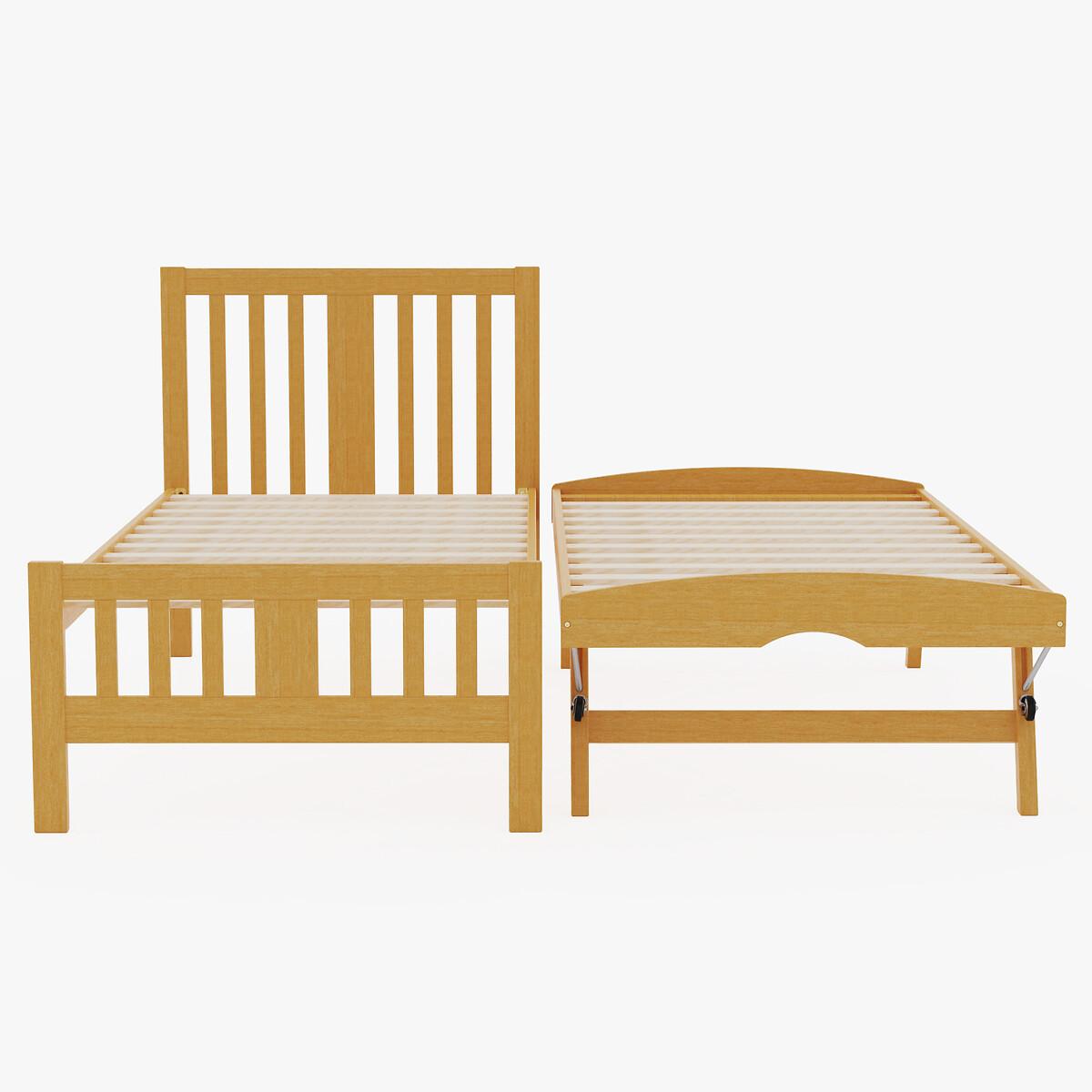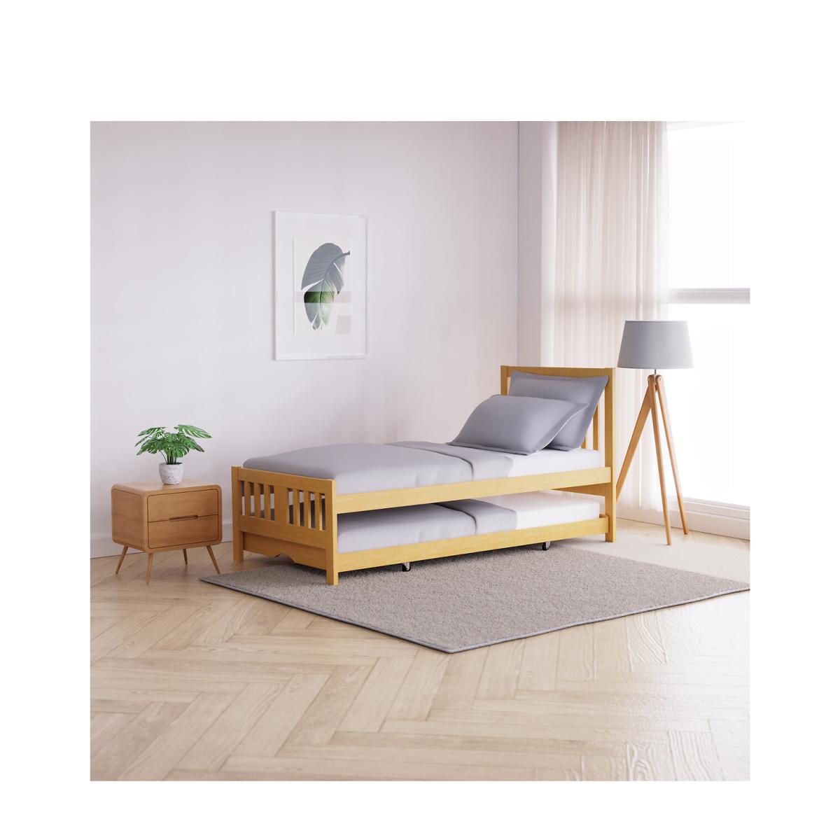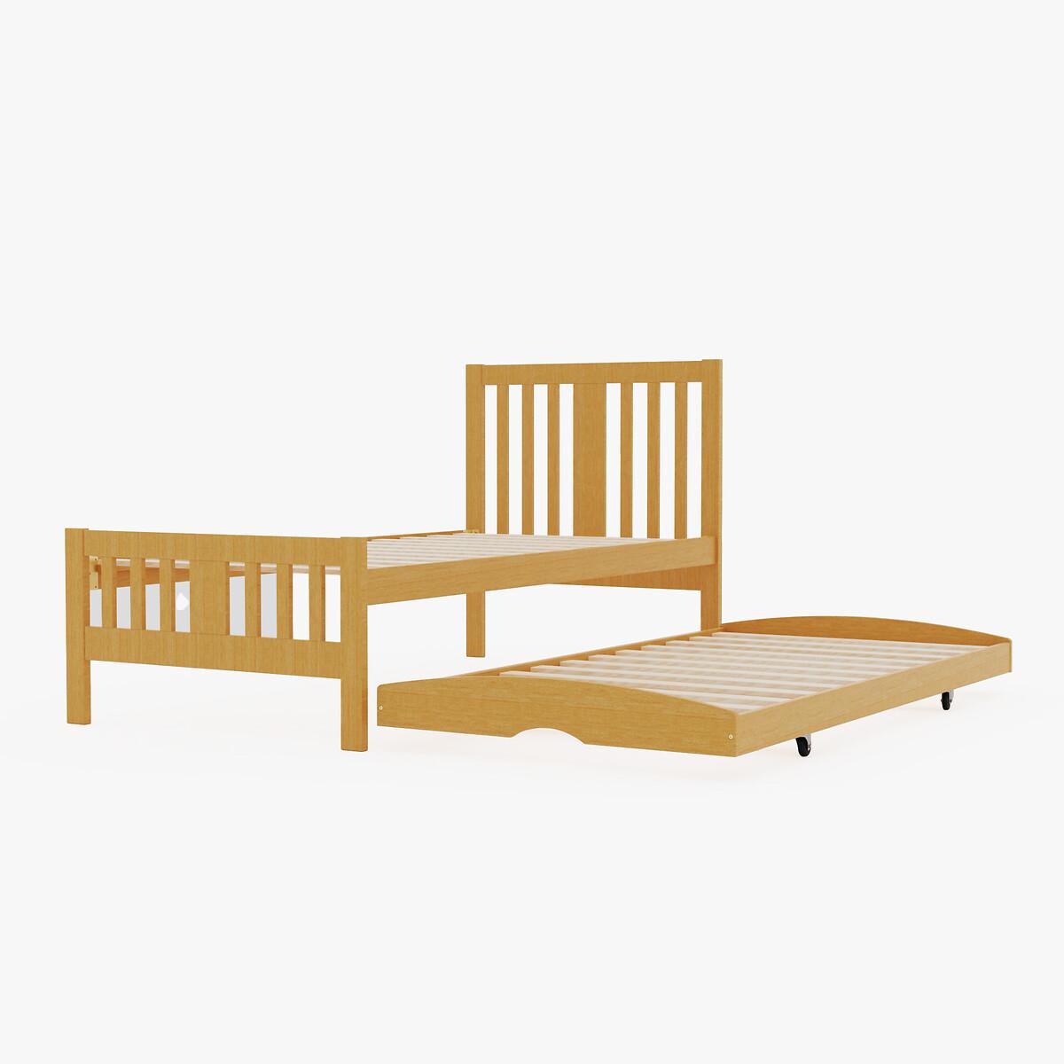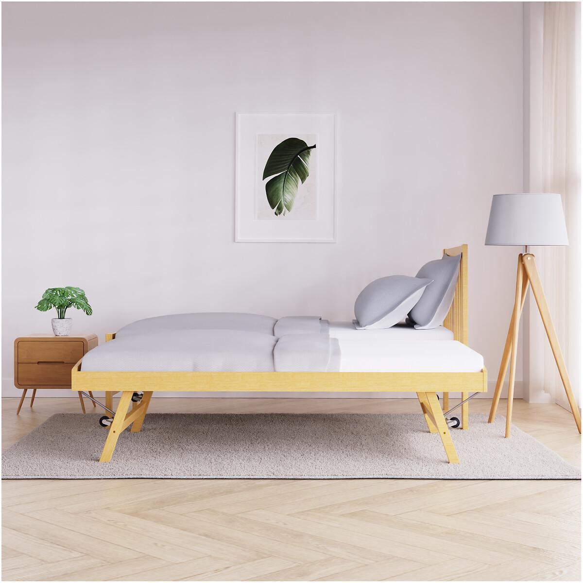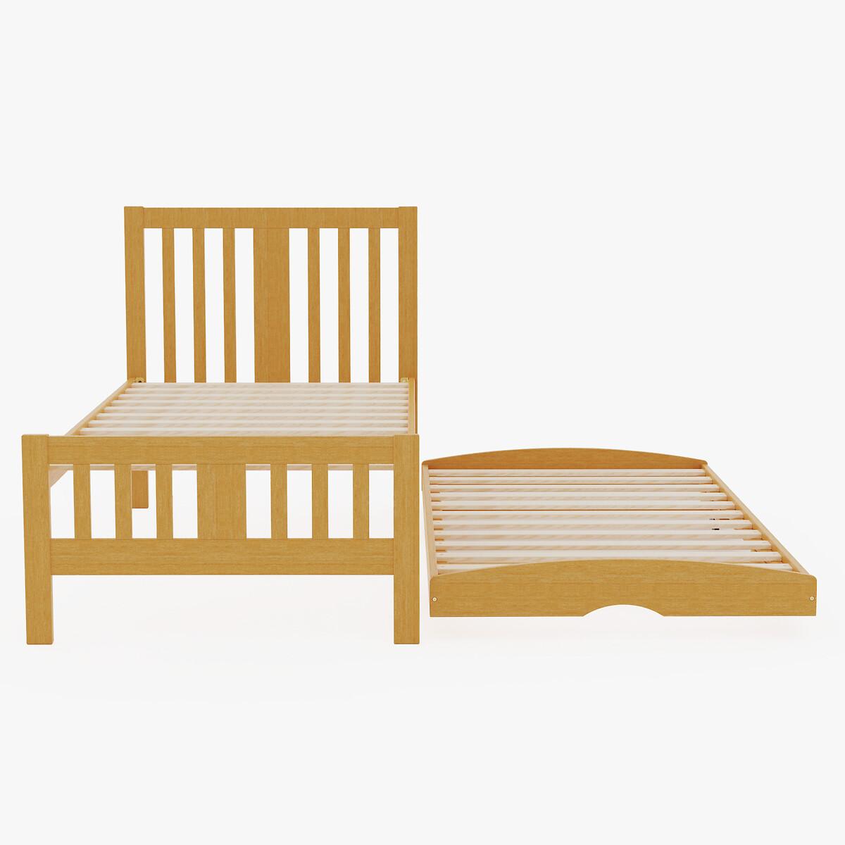 The natural oak wood finish gives this guest bed a beautiful and timeless appearance, with the added convenience of a pull-out trundle bed to fit any room. Product Details. Natural Oak Wood Pull Out Trundle Bed (Single Size)Supplied With Slatted Base Mattress Not Included. Assembly Required. Product Dimensions. Single: 197 cm x 97 cm x 102 cm , Weight - 44 KGParcel Dimensions. Single: Parcel 1 Packaged Dimensions - 109.5 cm x 108 cm x 9 cm, Weight 20 kg Parcel 2 Packaged Dimensions - 203.5 cm x 22 cm x 12.5 cm, Weight 17 kg Parcel 3 Packaged Dimensions - 203.5 cm x 29 cm x 14.5 cm, Weight 13 kg. This product will be dispatched by one of our trusted suppliers. You’ll be contacted by their selected courier about your delivery. Please note: this product cannot be delivered to all Offshore Islands, Northern Ireland or Republic of Ireland. KYOTO01
