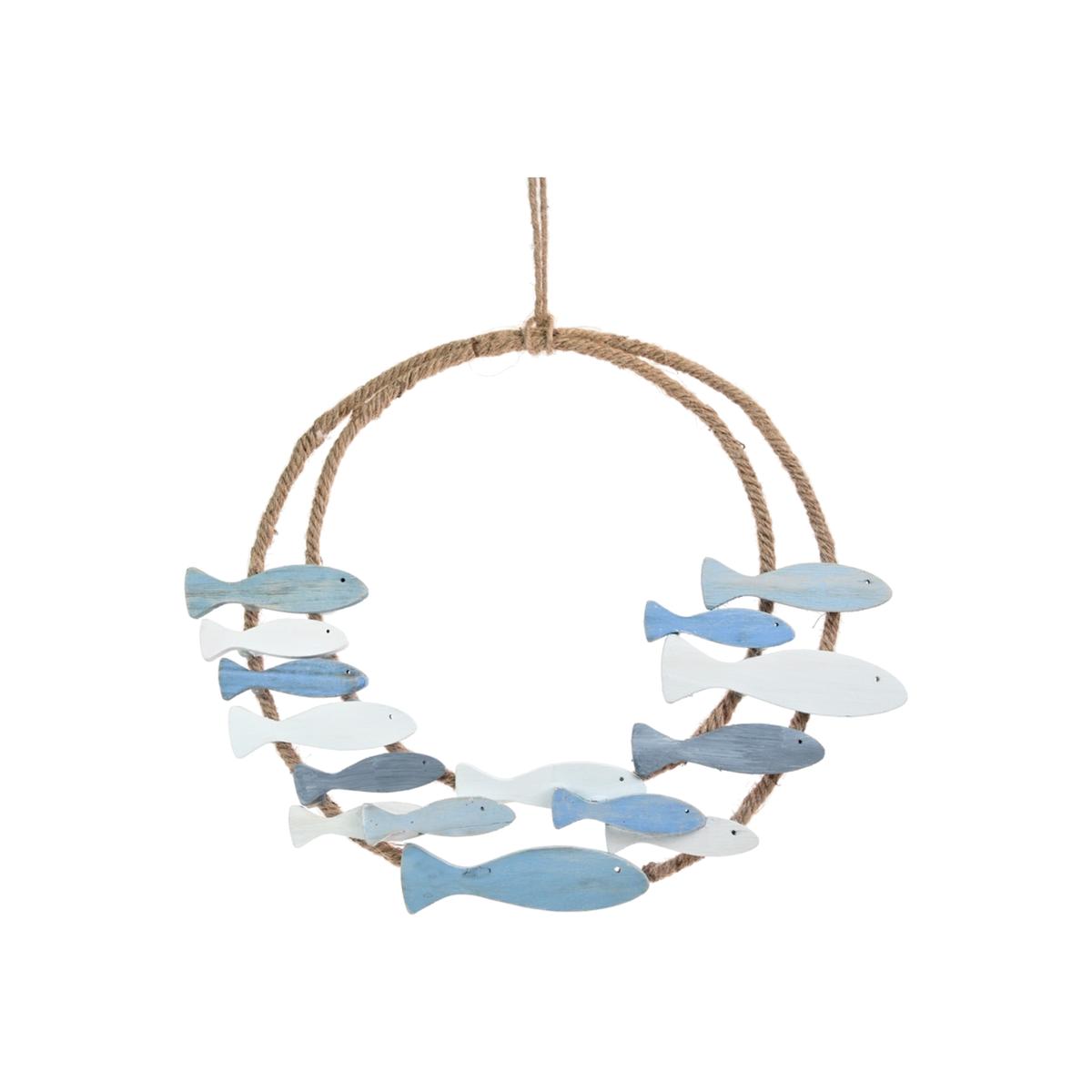 Large Group Of Fish Swimming Together Attached To Ring Of Rope Which Has a Loop At Top To Hang By. Hang anywhere in your home or holiday home. Have these fish swimming around in your home and giving it that ocean feel.