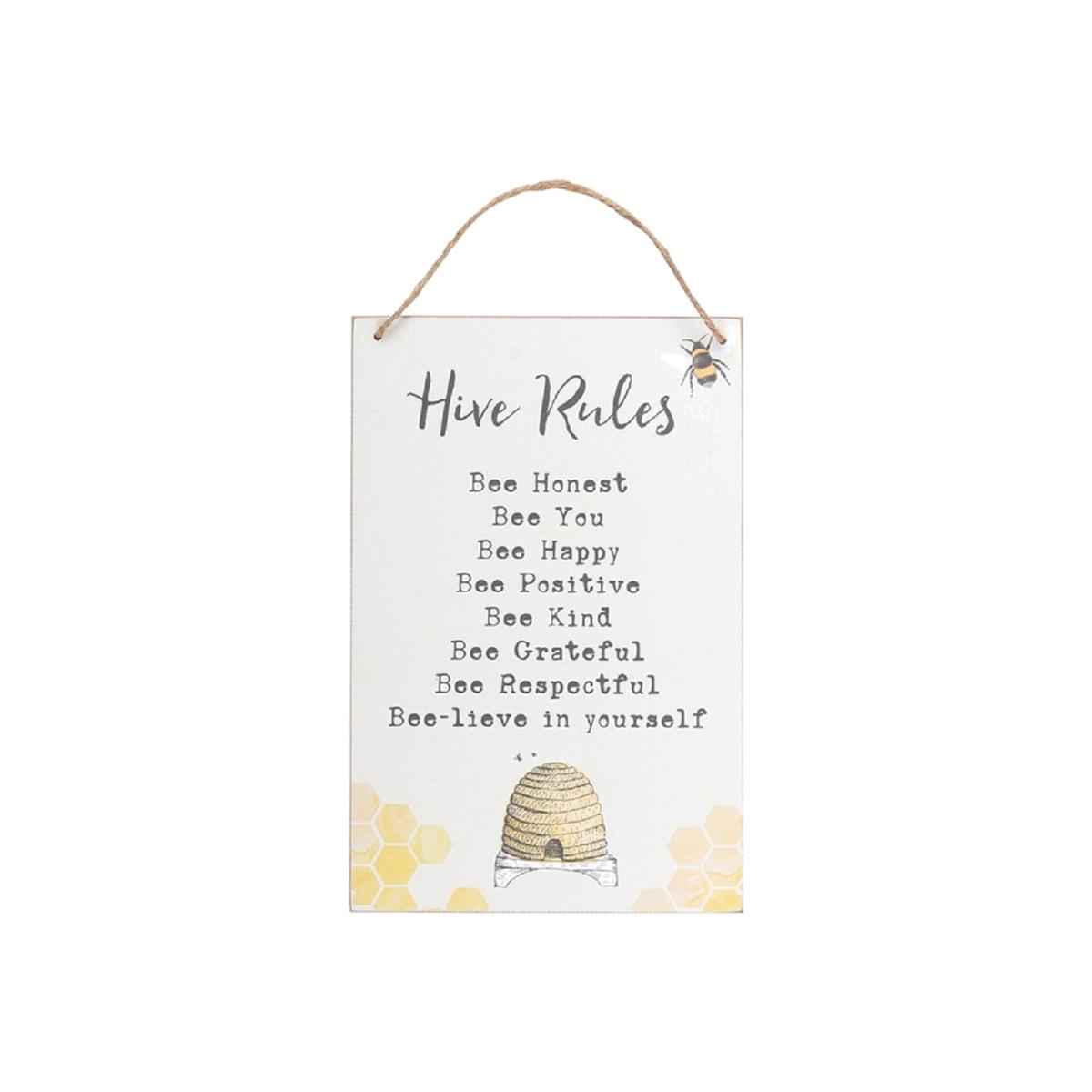 Display this sweet hanging wooden 'Hive Rules' sign in the home to keep your tribe on track with the most important words to live by.