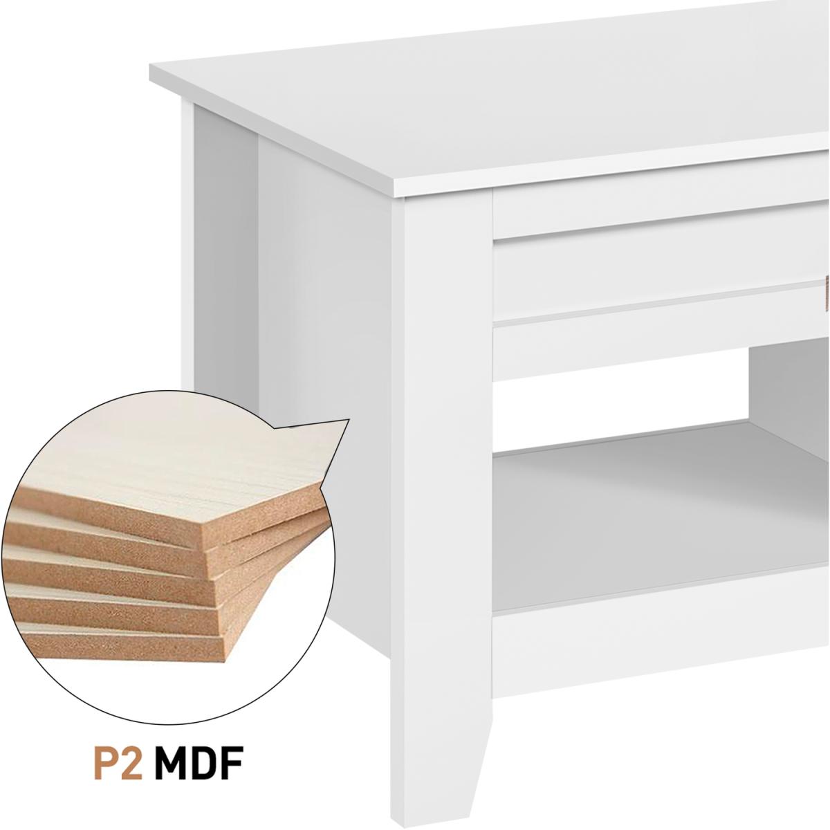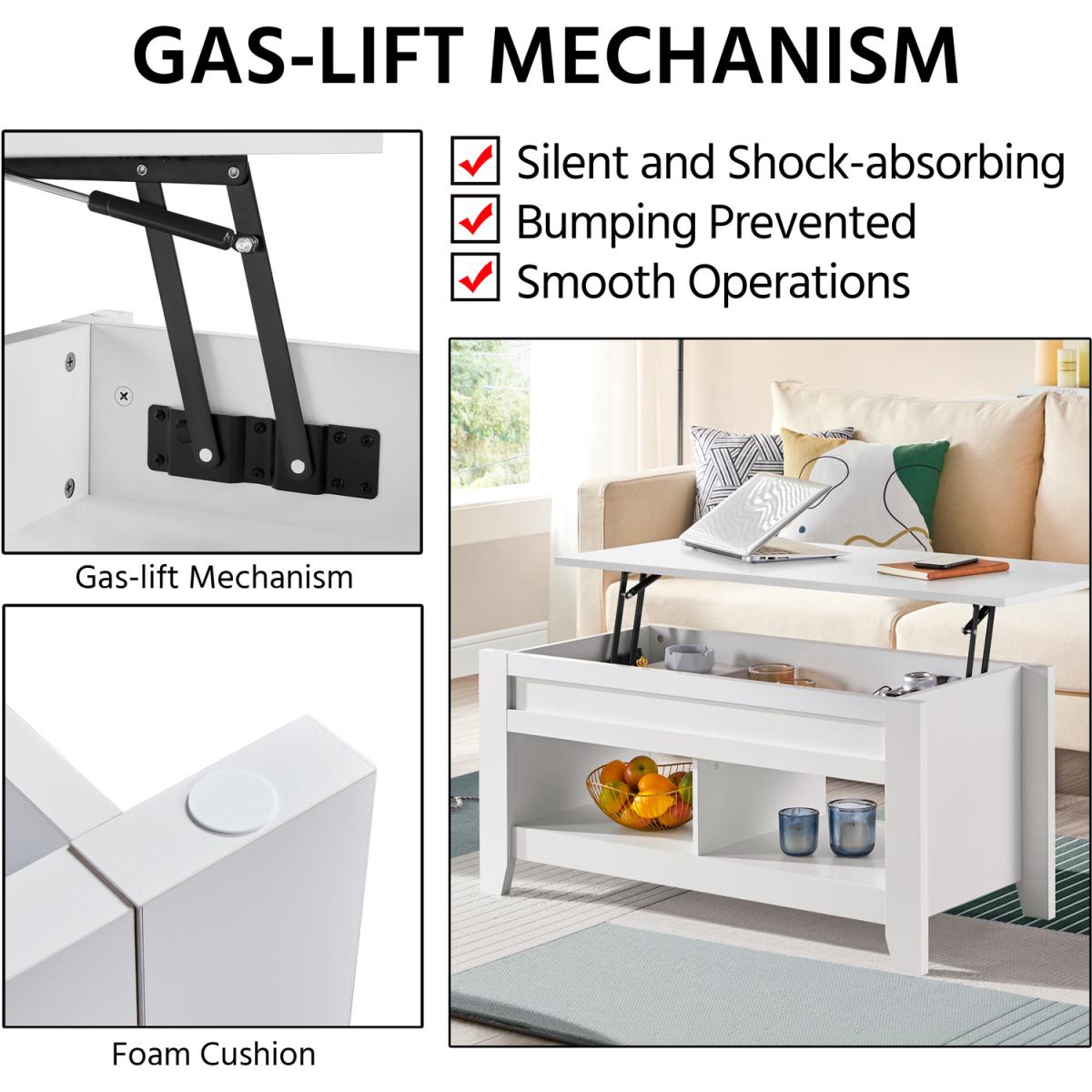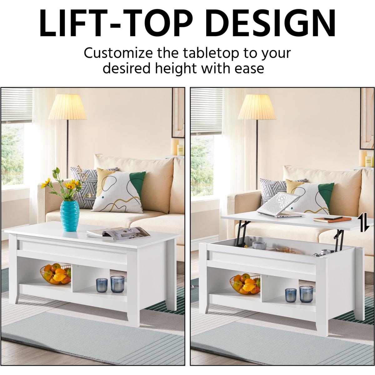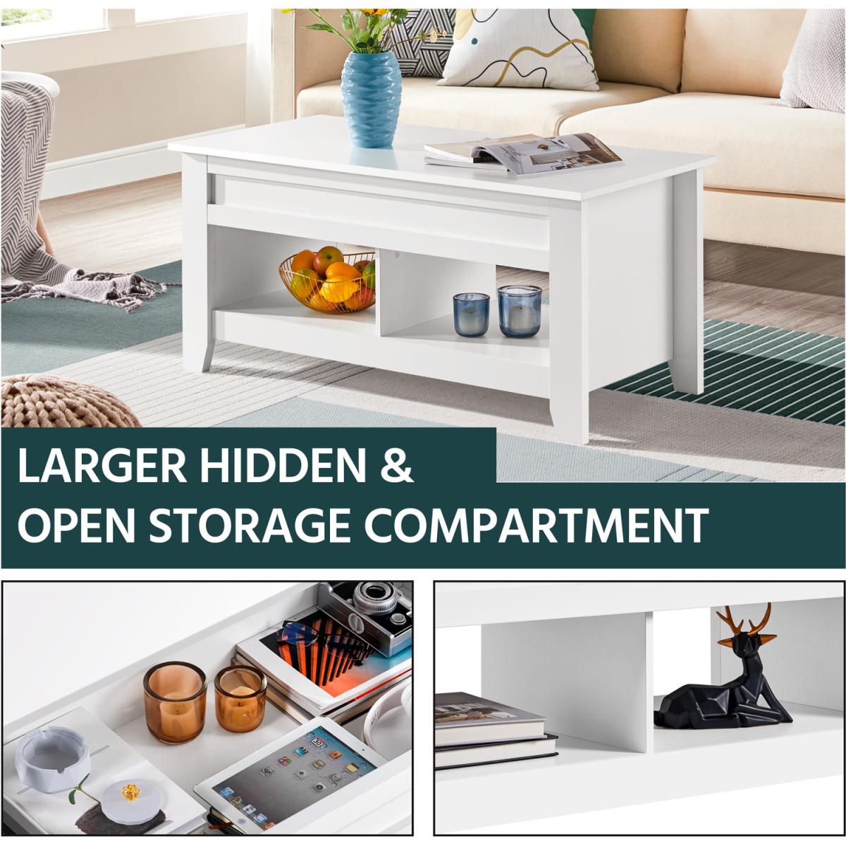 Double up the style and functions in your living room with this lift-top coffee table. It features a sizable hidden storage compartment under the top and a lift-up tabletop with customizable heights of 49 cm and 62 cm. Constructed from E1-compliant MDF and water- and scratch-resistant laminated surface, this lift-top living room table features high strength and is easy to maintain. The large storage space and versatile lift-top design make this coffee table a must-have for small living rooms, lofts, great rooms, condos, family rooms or dens. Simple assembly is required.