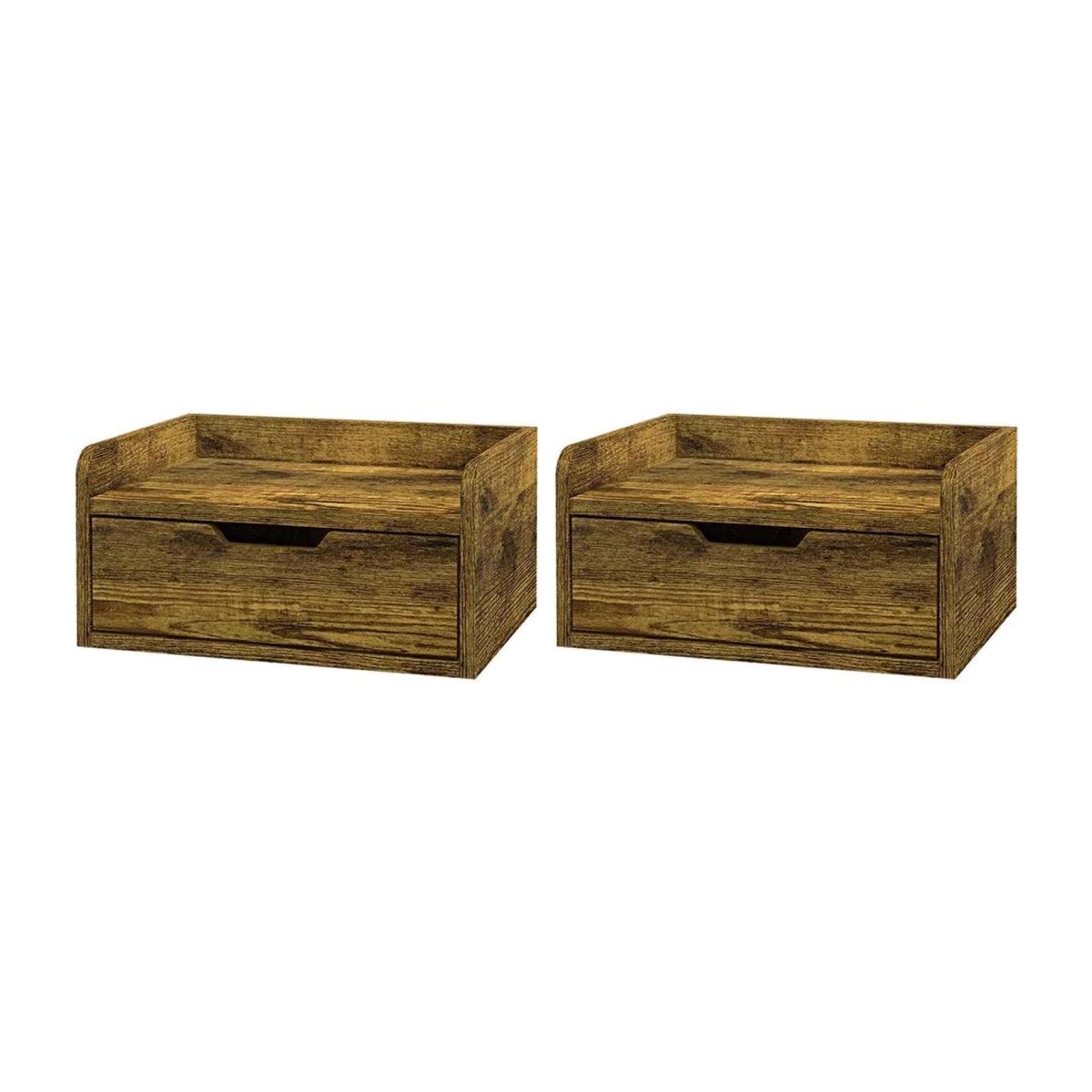 Wooden Pair of Floating Bedside Tables With Drawer - Dark Oak