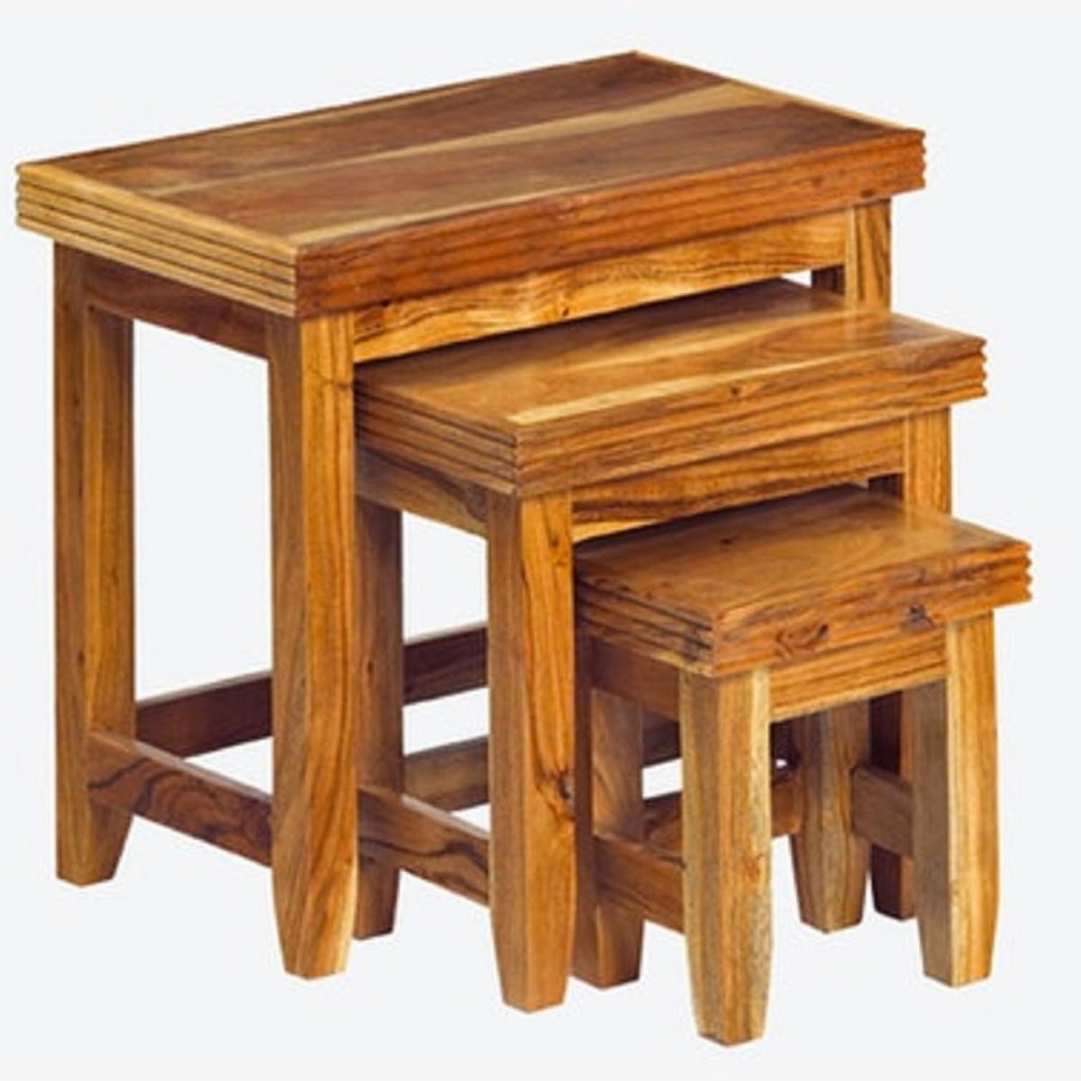 Introducing our elegant Wooden Reed 3 Piece Nest of Tables, a perfect combination of style and functionality. Crafted with care, these tables feature a beautiful wooden reed construction that adds a natural and stylish touch to your living space. This set includes three tables of varying sizes that neatly nest together, allowing for versatile use and efficient storage. Whether you need extra surface space for drinks, snacks, or decor items, this nest of tables has you covered. Designed to save space, these tables are a practical addition to any room. When not in use, simply stack them together to create a compact and tidy arrangement, optimizing your living area. The wooden reed construction ensures durability and longevity, providing a sturdy foundation for your belongings. Whether you place them in the living room, bedroom, or hallway, these tables will be a reliable and beautiful addition to your home. Upgrade your living space with the timeless charm and versatility of our Wooden Reed 3 Piece Nest of Tables. Experience the perfect blend of style, functionality, and space-saving design as these tables become an essential part of your everyday life.
