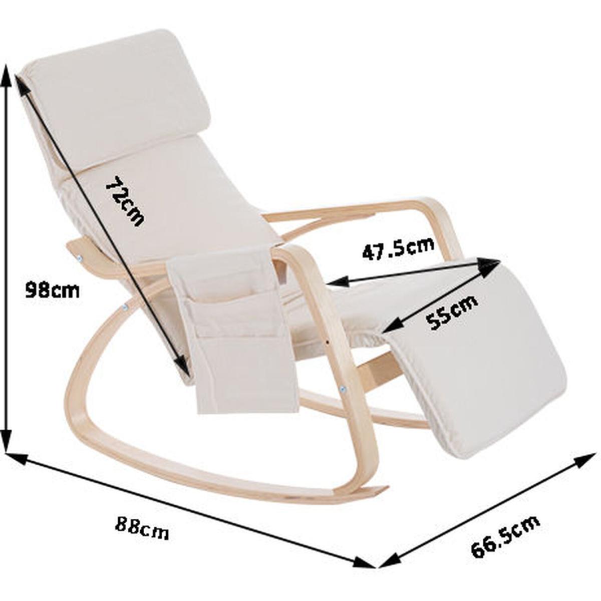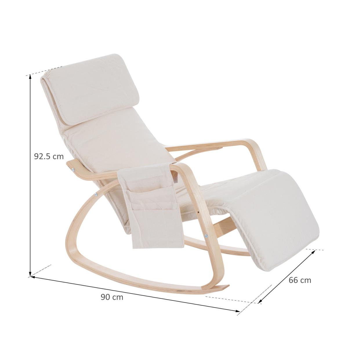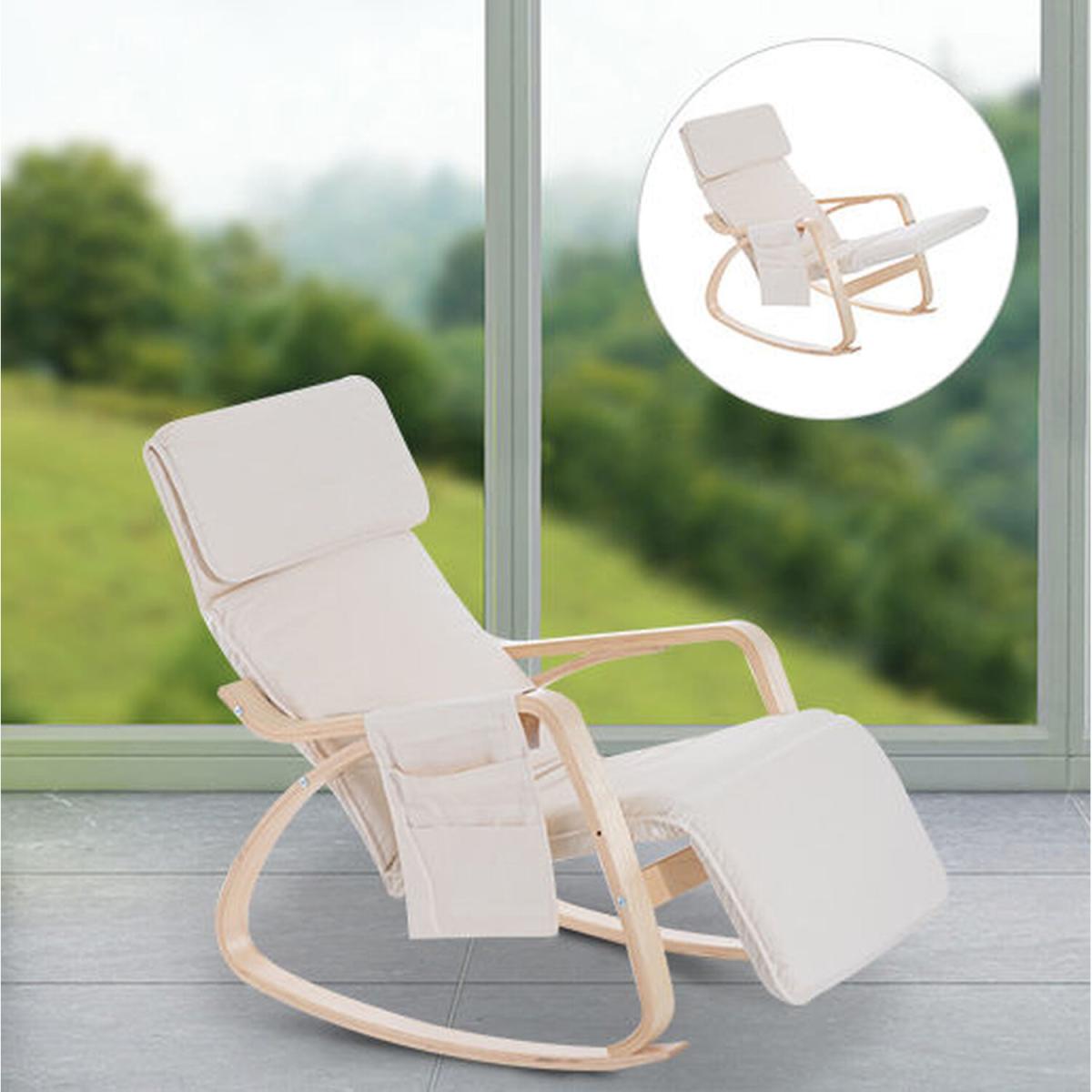 This HOMCOM rocking chair is designed with comfort and style in mind. The elegant design of the frame makes the chair very strong and sturdy. Made from birch wood, it is the most ideal solution to relax, use the rocking motion to get to the ideal angled position required. It also has the ability for the footrest to be adjusted in 5 levels to the ideal position to stretch your legs. Featuring a side pocket to store your TV remotes for quick access and no need to get off the chair. It is also great for reading or just lounging. The chair comes complete with a padded seat and back for added comfort. Whether in the garden, on the balcony or indoors, on your recliner, you can forget the world around you.