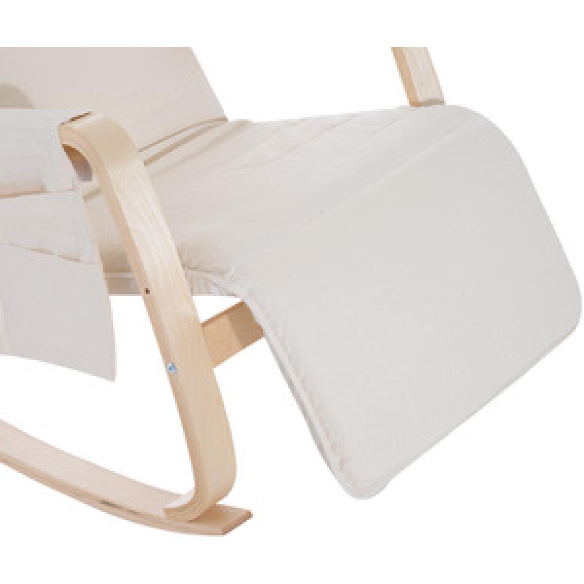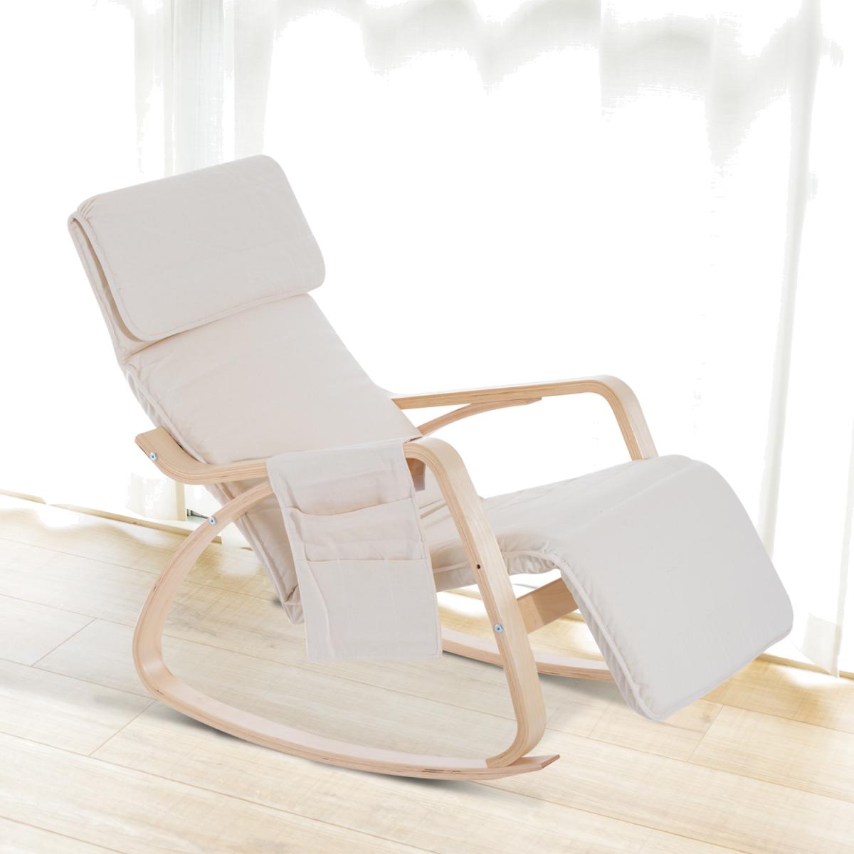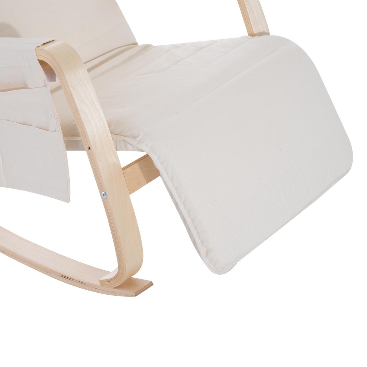 This HOMCOM rocking chair is designed with comfort and style in mind. The elegant design of the frame makes the chair very strong and sturdy. Made from birch wood, it is the most ideal solution to relax, use the rocking motion to get to the ideal angled position required. It also has the ability for the footrest to be adjusted in 5 levels to the ideal position to stretch your legs. Featuring a side pocket to store your TV remotes for quick access and no need to get off the chair. It is also great for reading or just lounging. The chair comes complete with a padded seat and back for added comfort. Whether in the garden, on the balcony or indoors, on your recliner, you can forget the world around you.