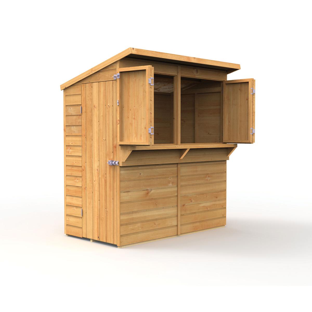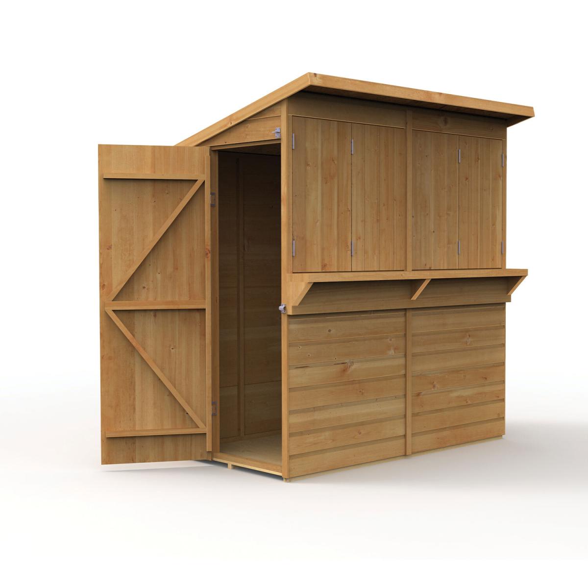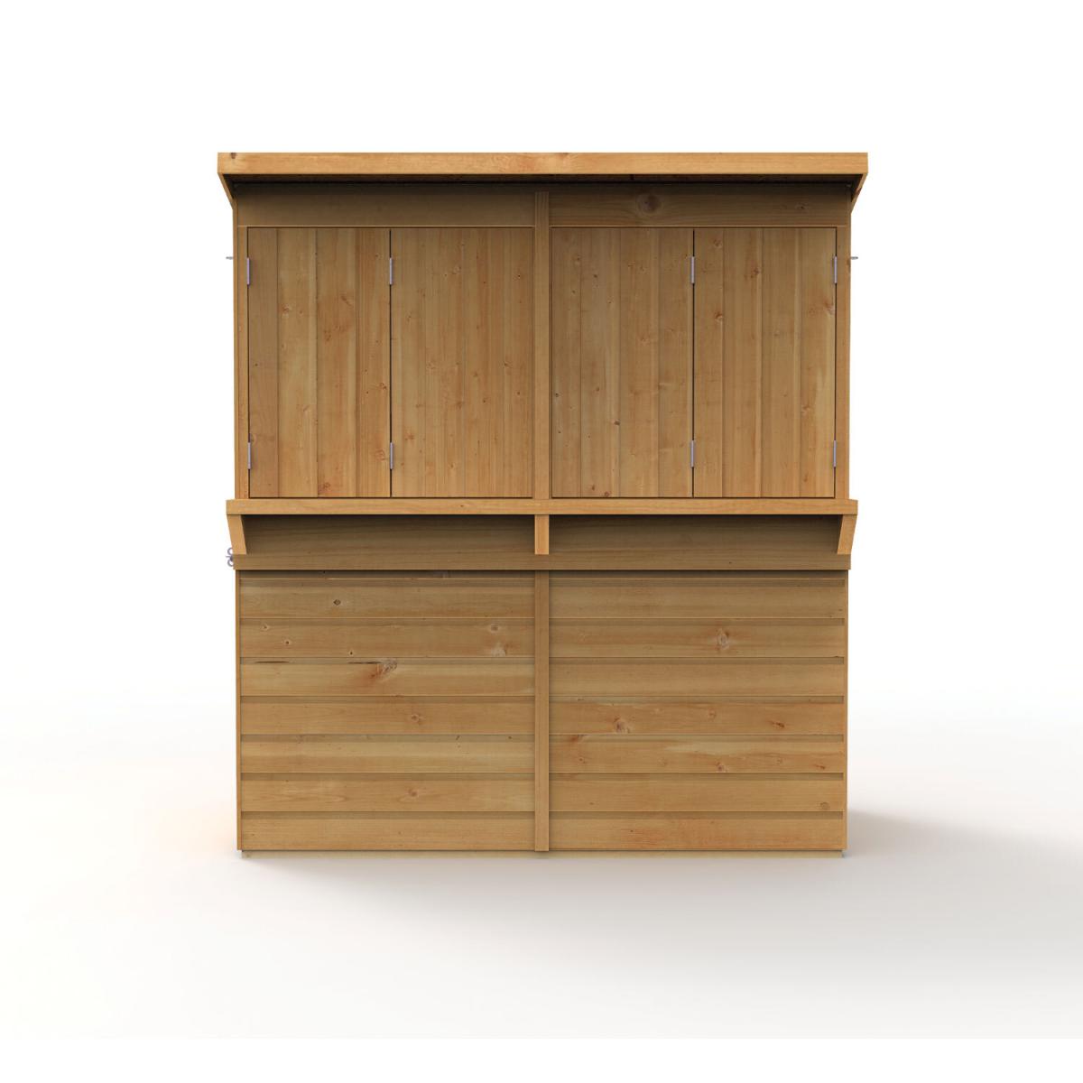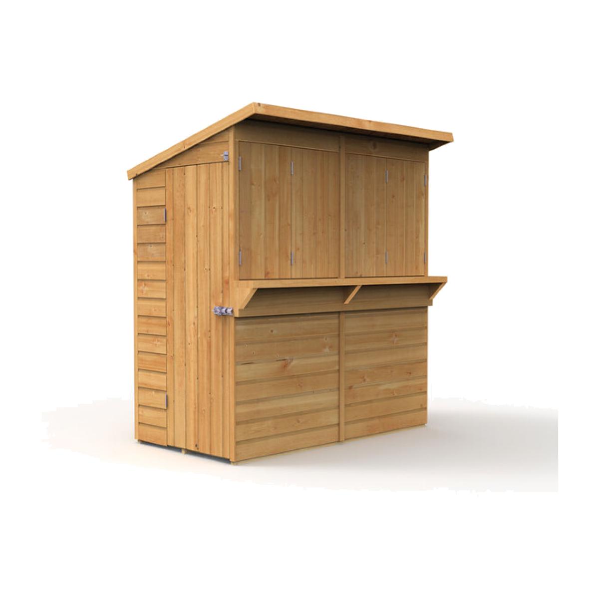 Transform your garden into a versatile outdoor entertainment space by adding a Wooden Shiplap Garden Bar. Featuring a durable top bar and two bi-fold shutters that easily open to create a serving hatch, this is the perfect addition to your garden for many summers to come! Whether you want a tiki bar, gin bar or just a standard garden bar, you have the freedom to pick where you want the door to be installed to create whatever bar you want. When you're not using it, you may lock the bar and store drinks over the summer, or even turn it into a shed once the hotter days have left us for another year. A fantastic way to entertain in style, invite your friends and family over for a drink or two in your garden.