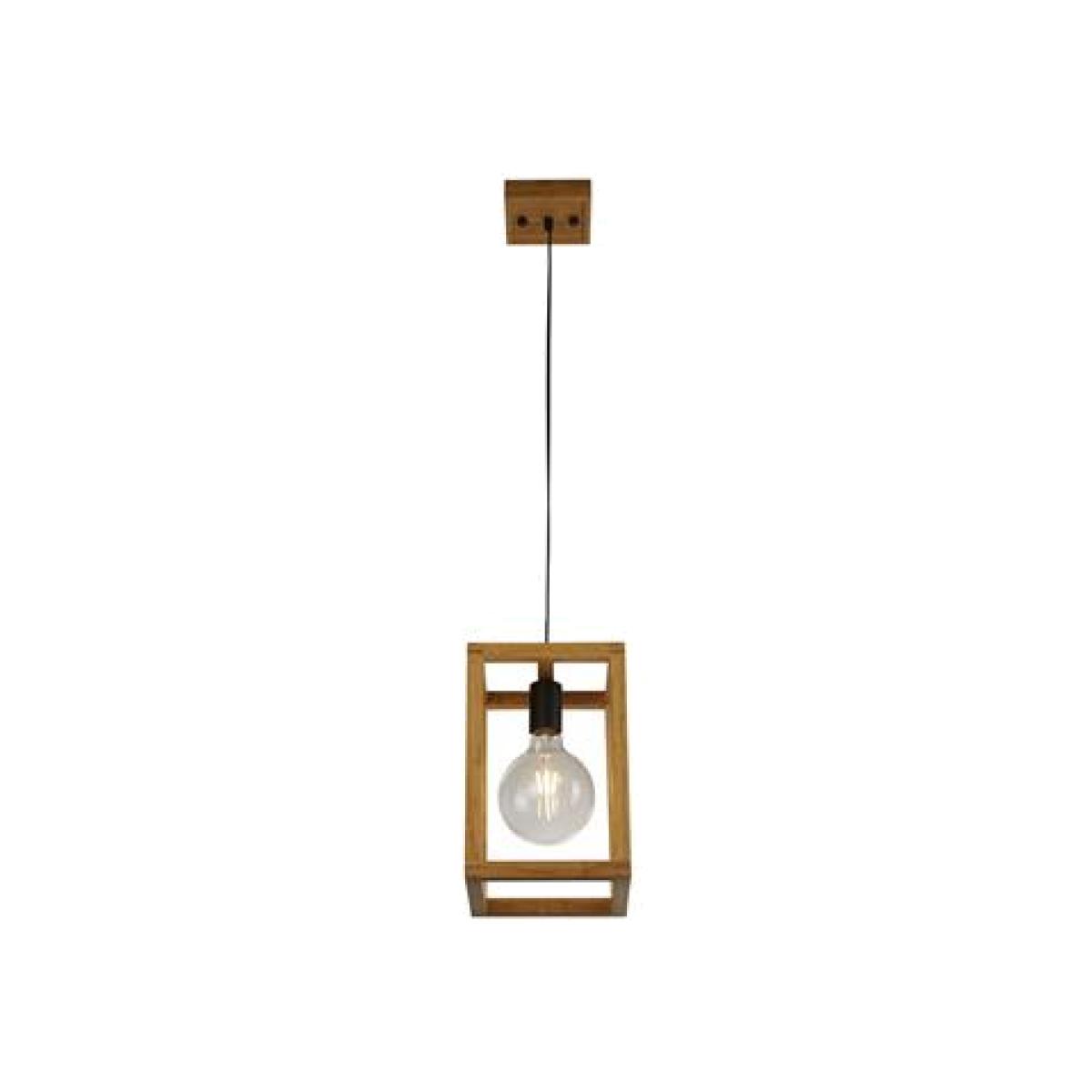 The Square wooden cage ceiling pendant adds a modern yet rustic look to any room. With an exposed bulb within the frame, this light has an industrial feel, and would look great within any décor. The Square wooden cage ceiling pendant adds a modern yet rustic look to any room. With an exposed bulb within the frame, this light has an industrial feel, and would look great within any décor.
