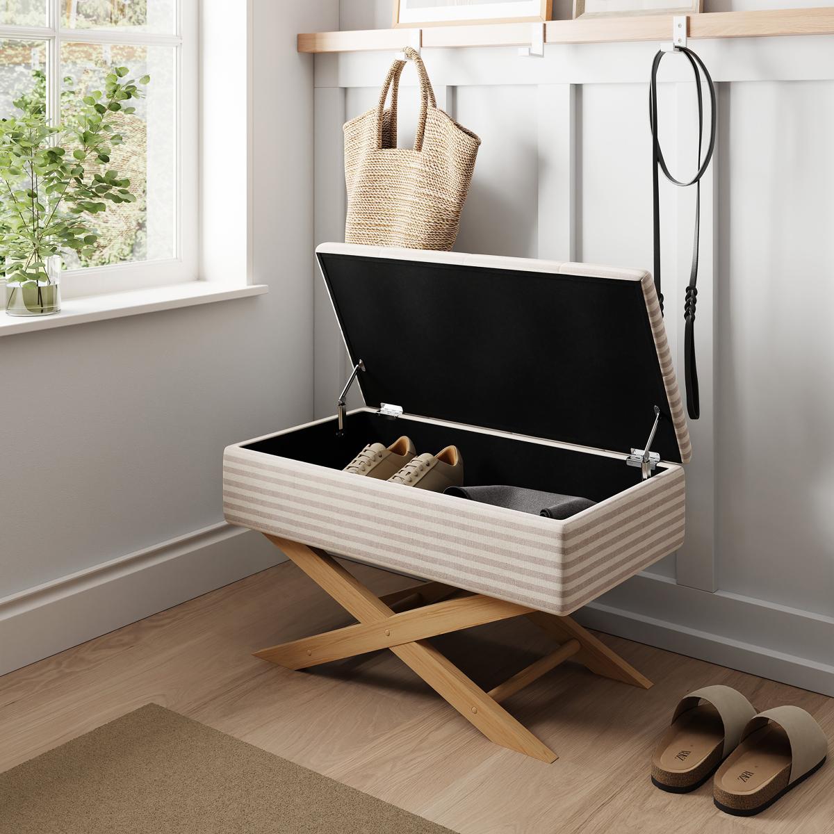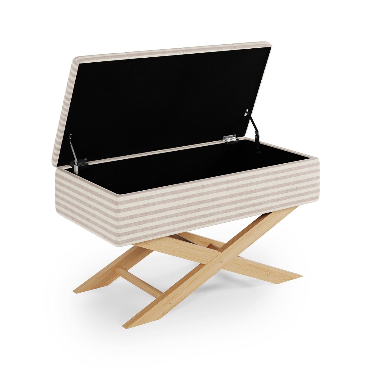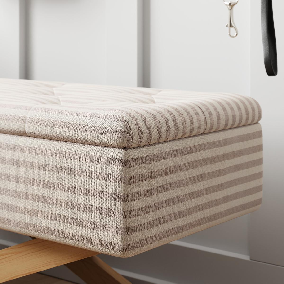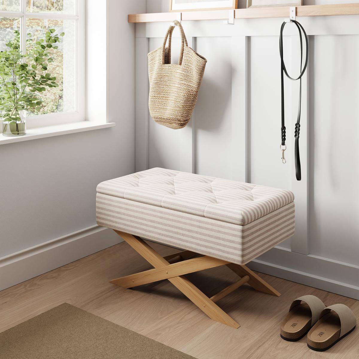 Wooden Storage Bench, Woven Stripe Natural Natural