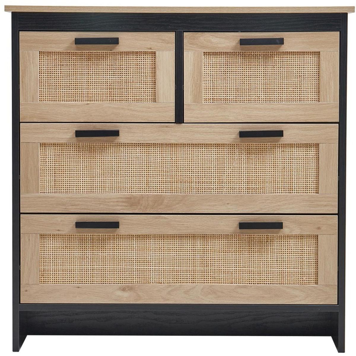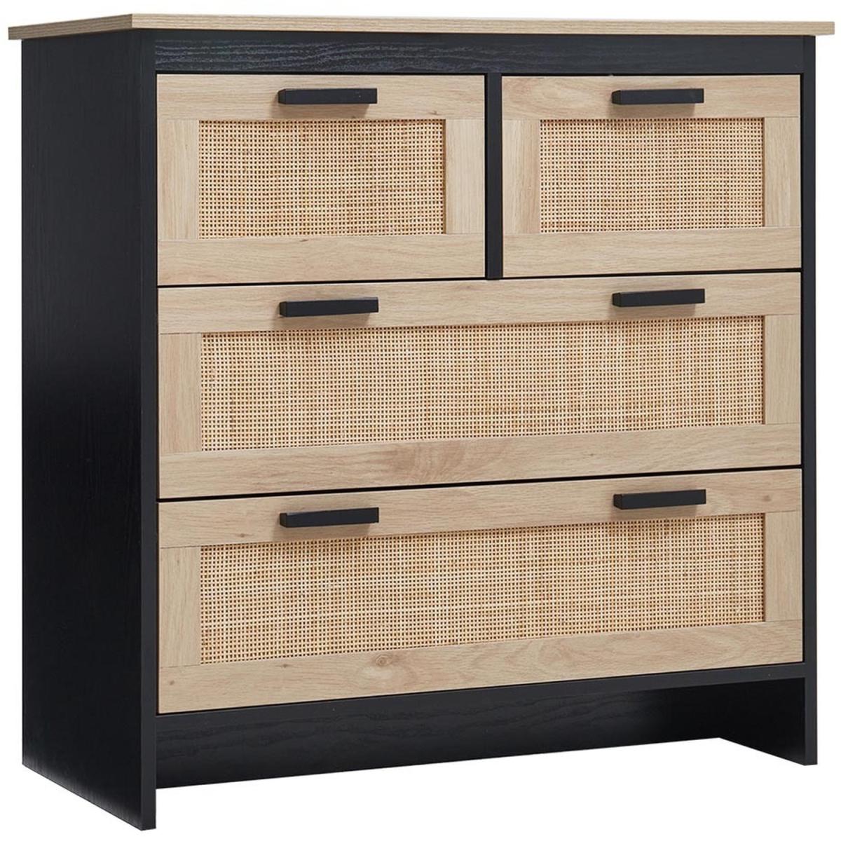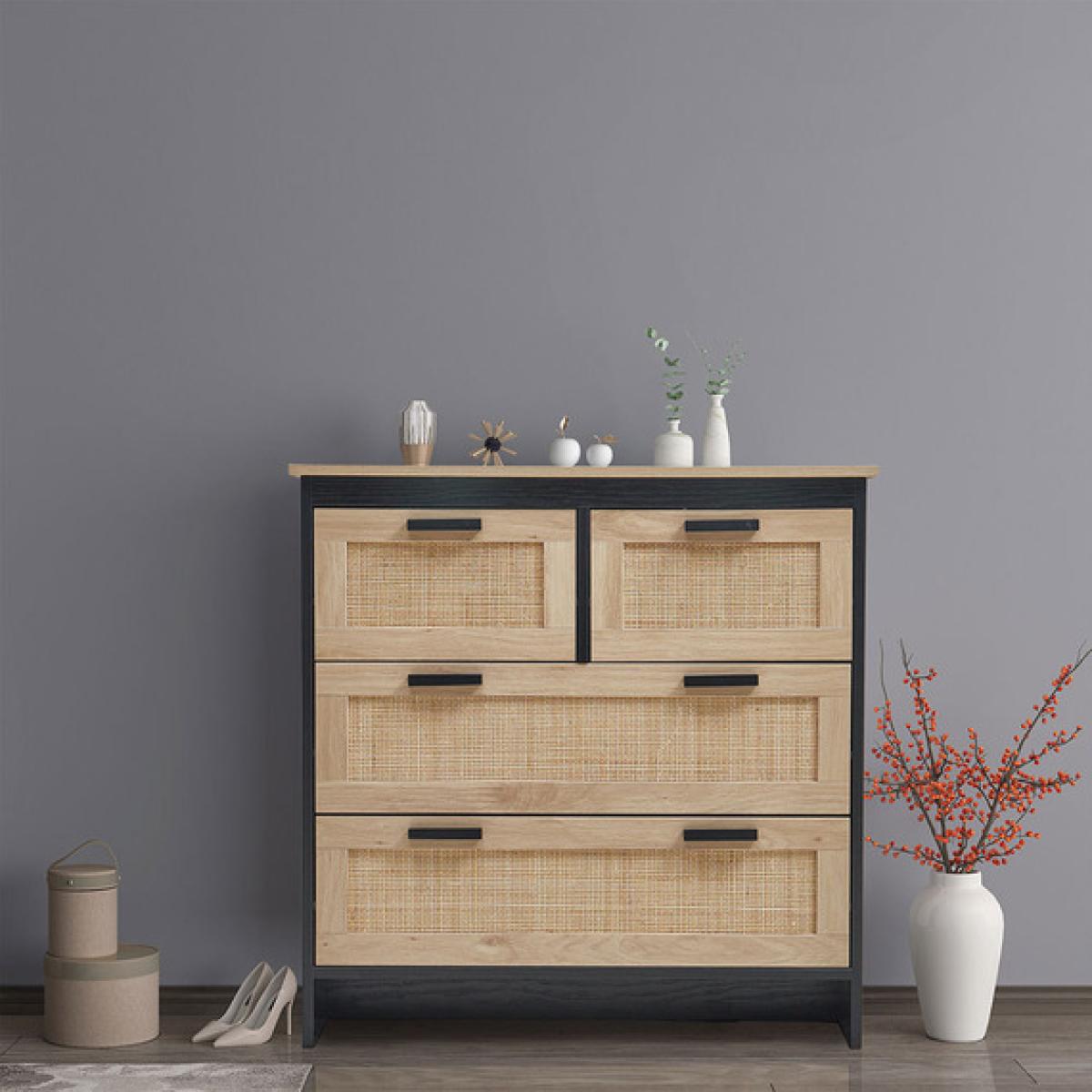 Wooden Storage Cabinet with Rattan Drawer Console Table - Black