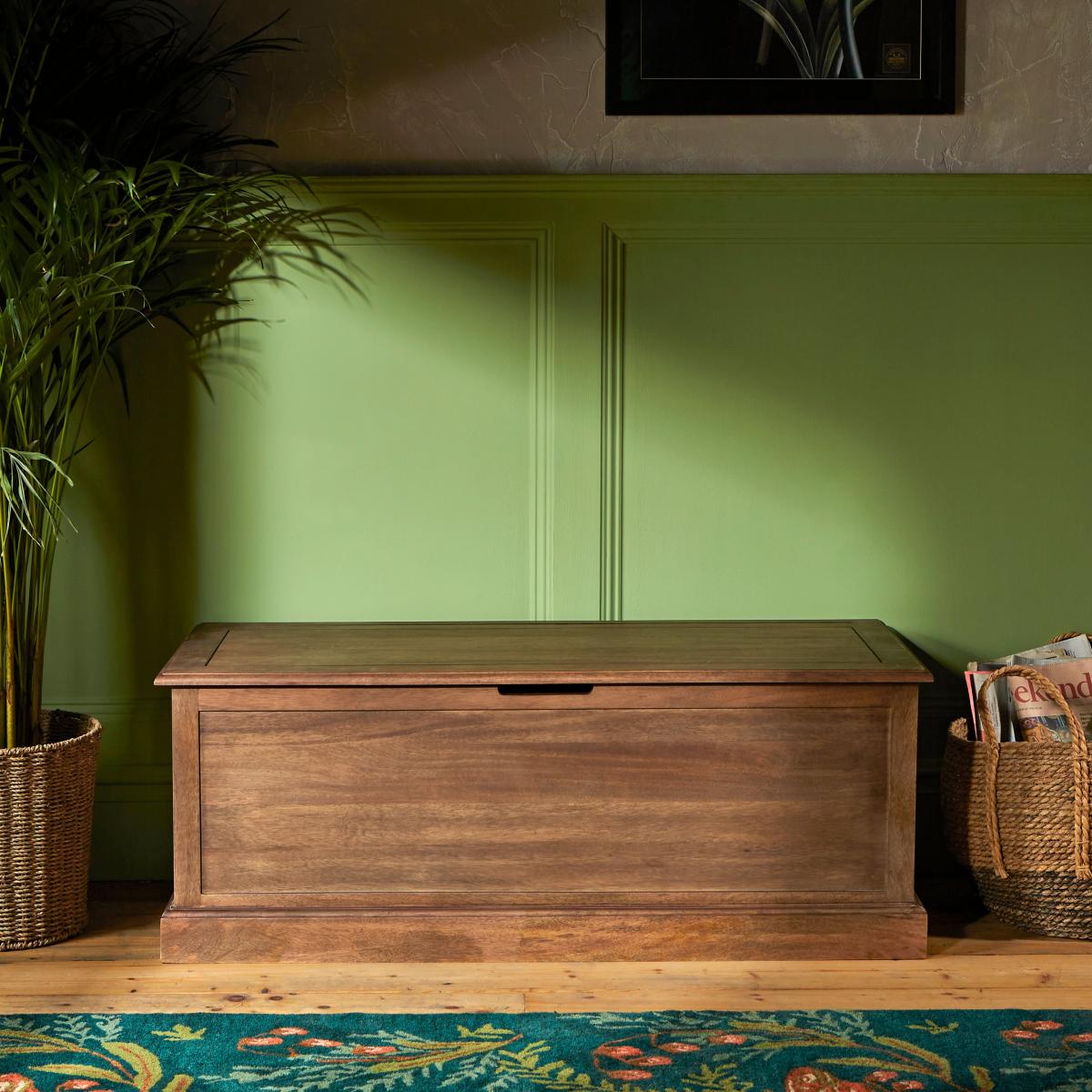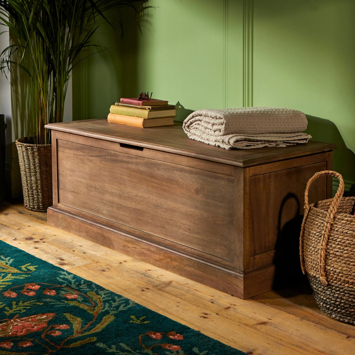 I love the wooden storage trunk as it combines practicality with rustic charm, making it a versatile addition to both modern and traditional interiors. It works particularly well in living rooms and bedrooms where extra storage is needed without compromising on style. You can use it as a footstool, a side table, or even a daybed with some cushions on top. To style it effectively, consider placing it in front of a sofa or at the foot of the bed, adding a throw or decorative cushions for a cosy touch. Its wooden finish offers warmth and texture, making it easy to incorporate into spaces with natural, earthy tones or contrasting with more contemporary, sleek decor.