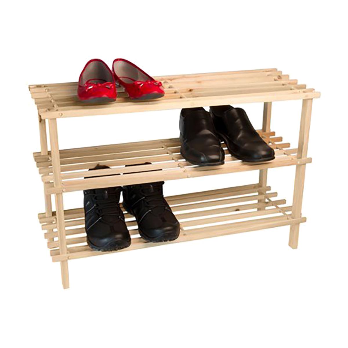 Keep your hallway tidy and your floors clean with this Wooden Three Tier Shoe Rack. This elegant, wooden rack is the perfect place to keep your shoes neat and tidy while making sure you always have access to your favourite footwear. With space for boots and wellies on the top tier and the bottom tiers that makes the perfect home for smaller shoes, pumps and trainers, this is an essential addition to any busy family home.