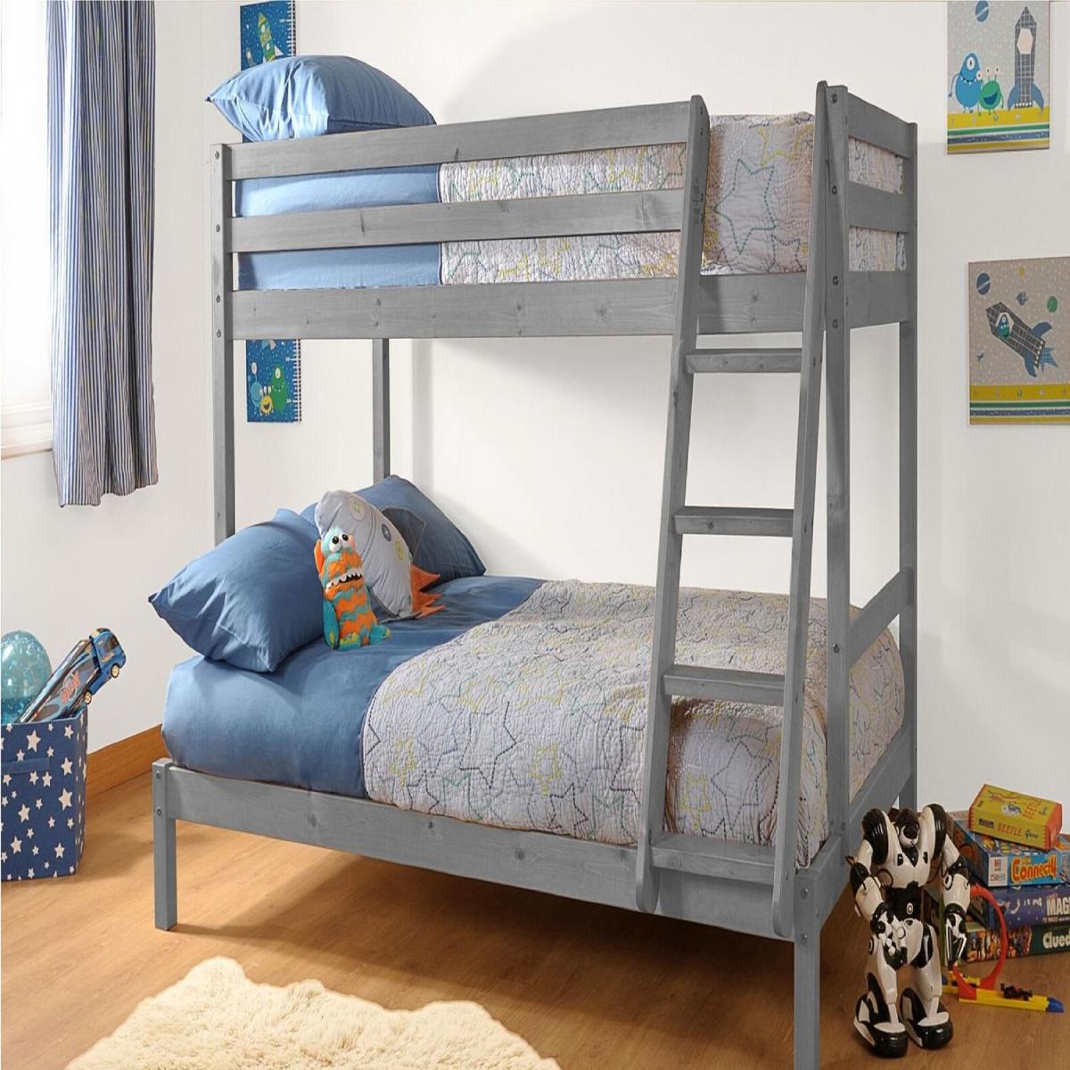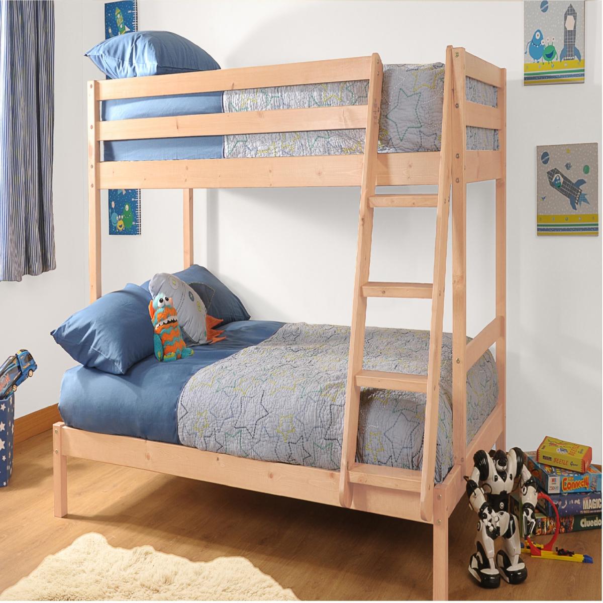 The Triple Bunk is handmade from solid sturdy pine and available in either stylish white, Grey, Natural or classic caramel finish, and is the ideal space saver where you want to maximise space. Both bunks feature slatted bases to give rigidity and support. A deep and wide-set ladder for ease of access to the top bunk, whilst being easy on the feet. The top bunk features safety rails all-round the bed to ensure your little one sleeps safely. This bunk has a 3ft Single bed on top and the 4ft Small Double on the bottom.