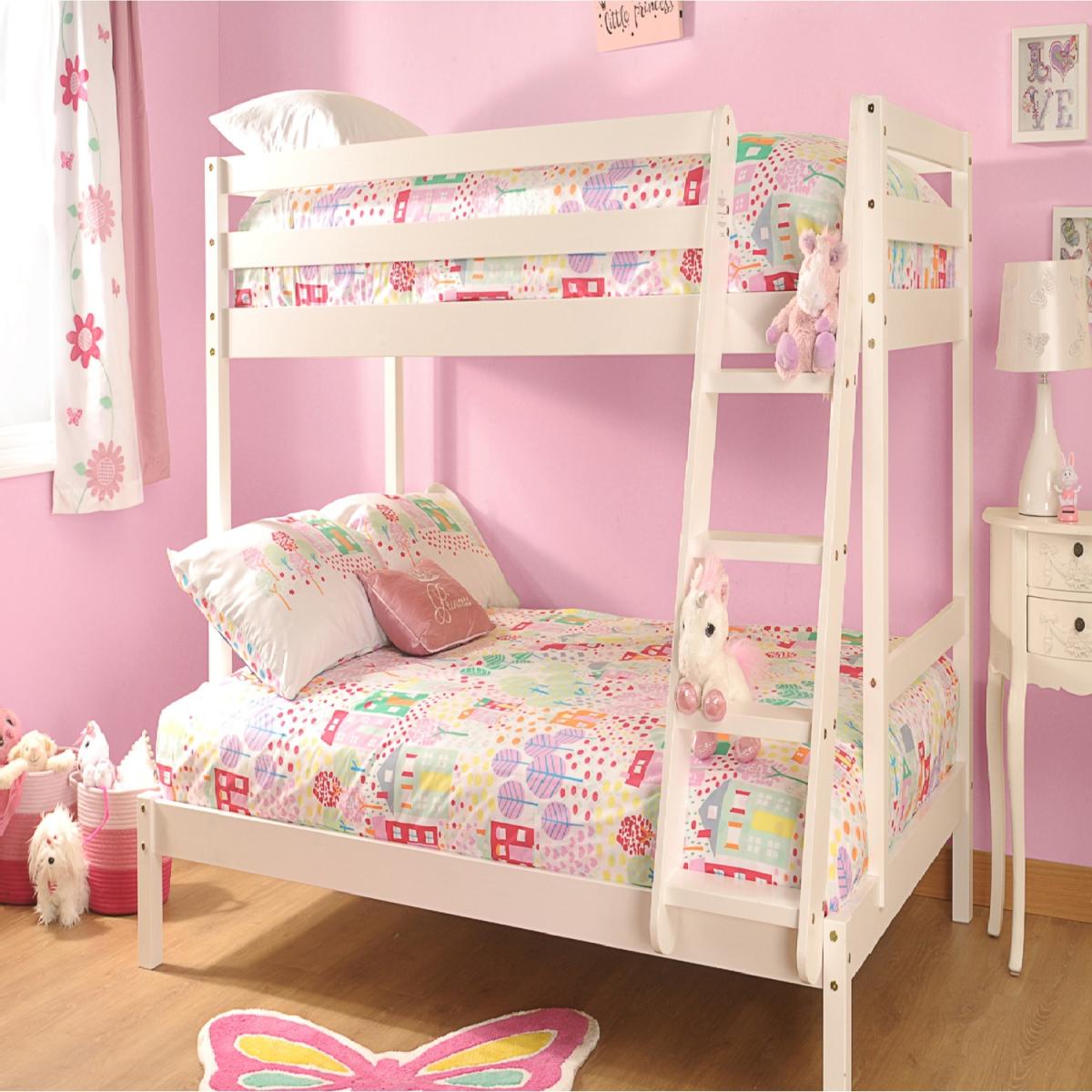 I’m a big fan of this neutral triple bunk for its smart space-saving design and timeless pine finish. It slips straight into Scandi, coastal or modern farmhouse schemes and gives you three full beds without crowding the floor. The clean lines make it easy to dress up or down as your kids’ tastes change. For styling, layer in soft, tonal bedding and add clip-on bedside lamps for late-night story time. Keep clutter at bay by popping storage baskets under the bottom bunk and hanging a simple peg rail nearby for backpacks or dressing-up costumes. A couple of framed prints or a chalk-paint wall behind it will instantly make the area feel personal and fun.