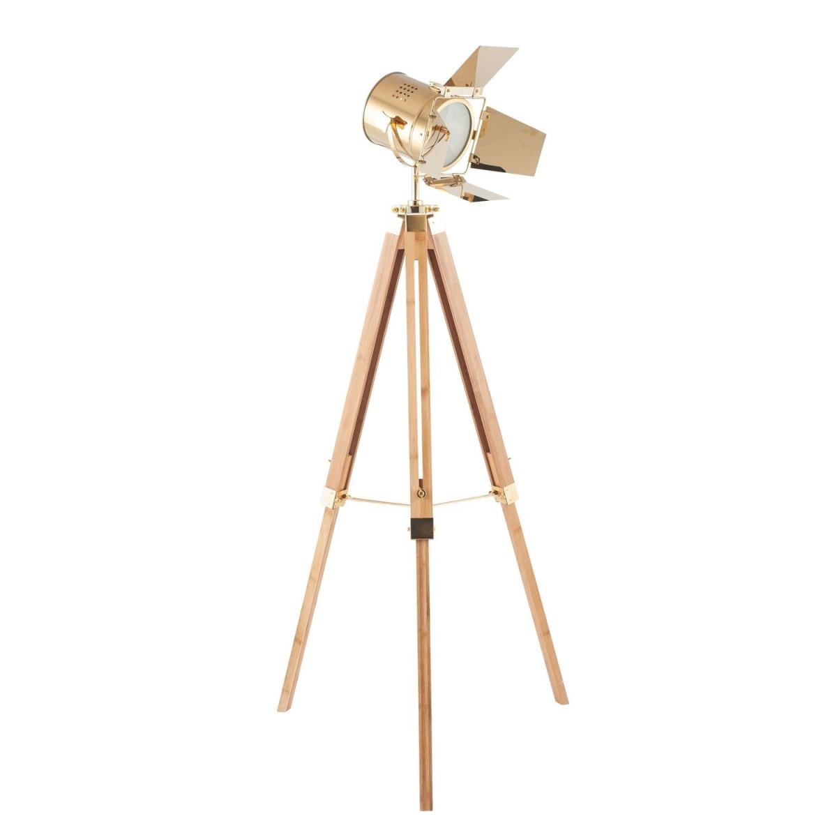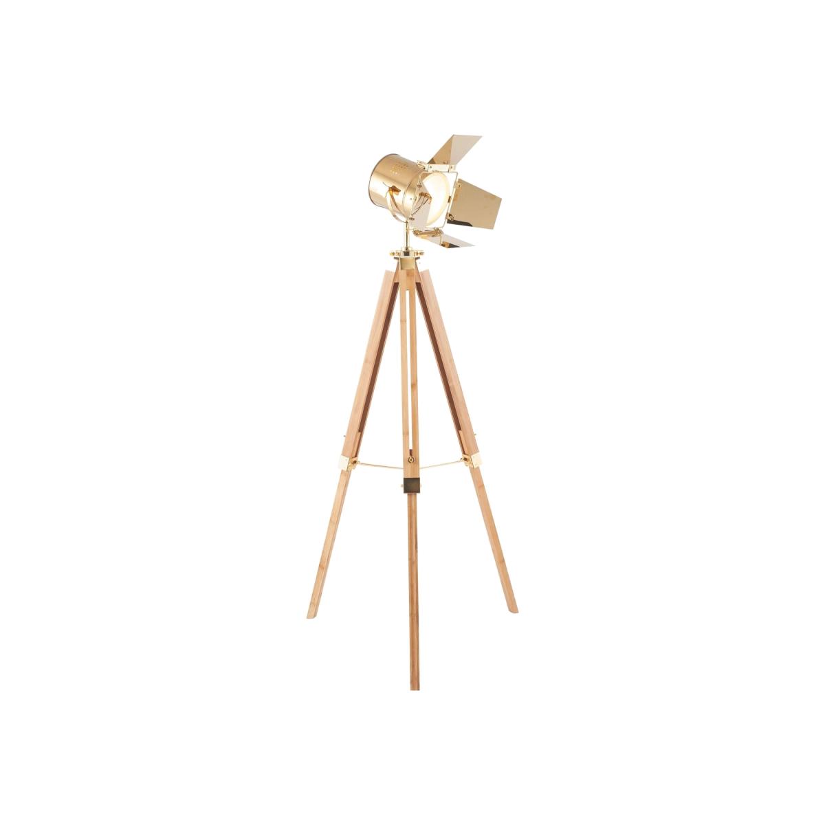 Add a touch of Hollywood glamour to your home with this natural wood and gold tripod floor lamp. Featuring a film light head with shutters, this table lamp makes a statement in any room.