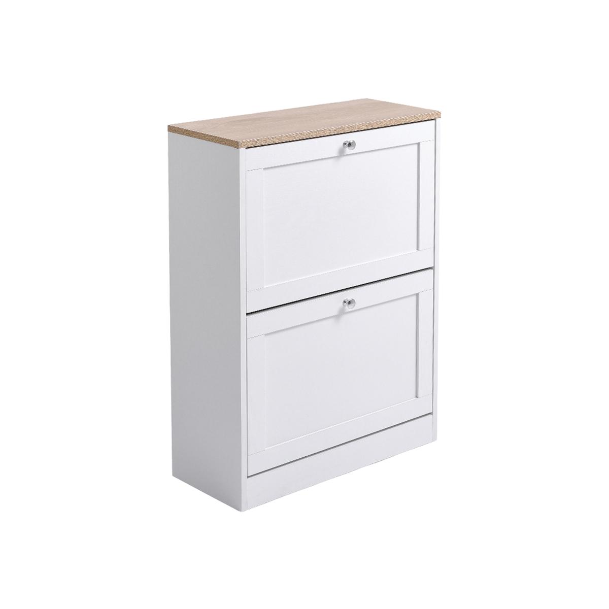 Wooden Two-Tier Flip-Down Shoe Storage Cabinet - White