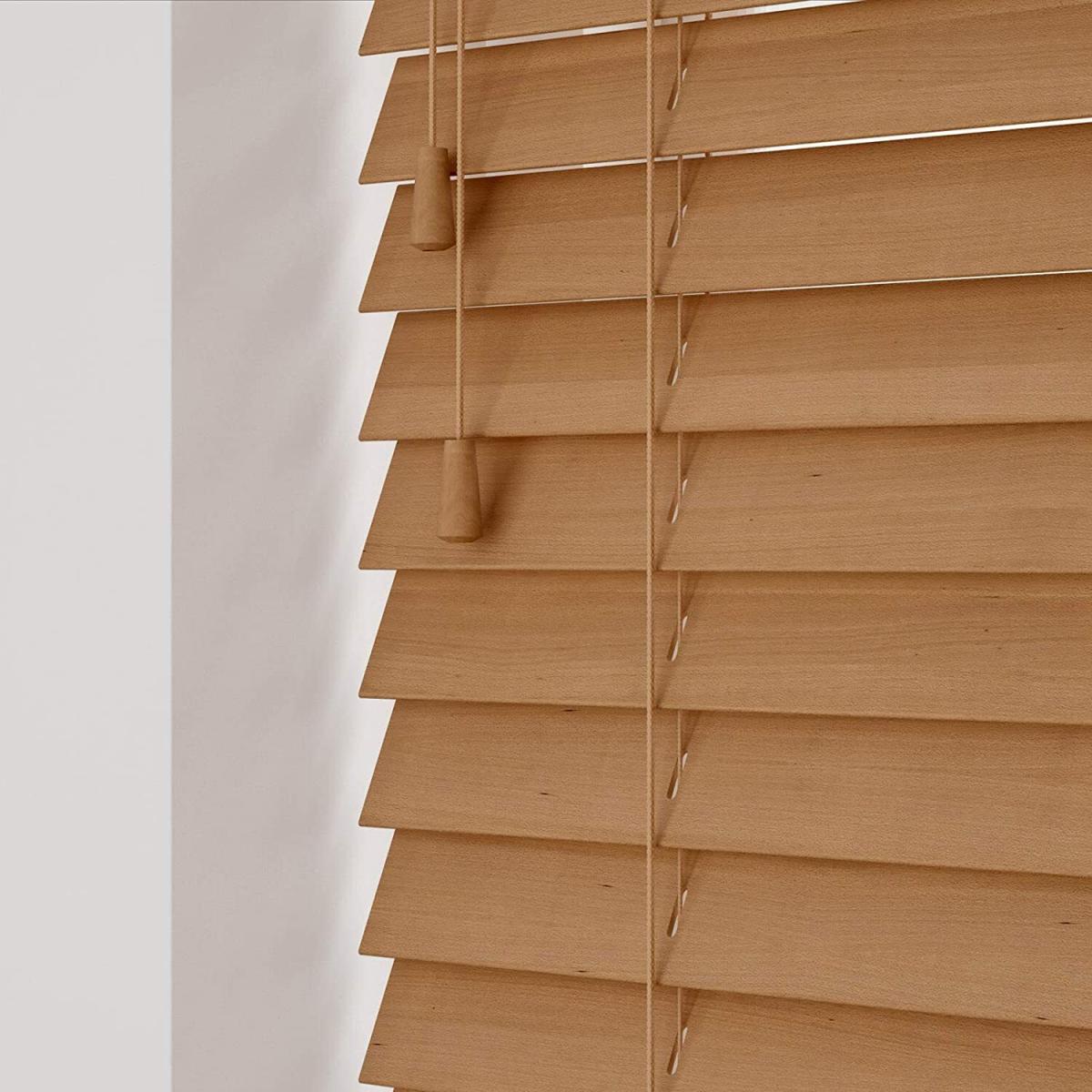 Wooden Venetian Blinds With Strings - Caramel Oak / 240cm