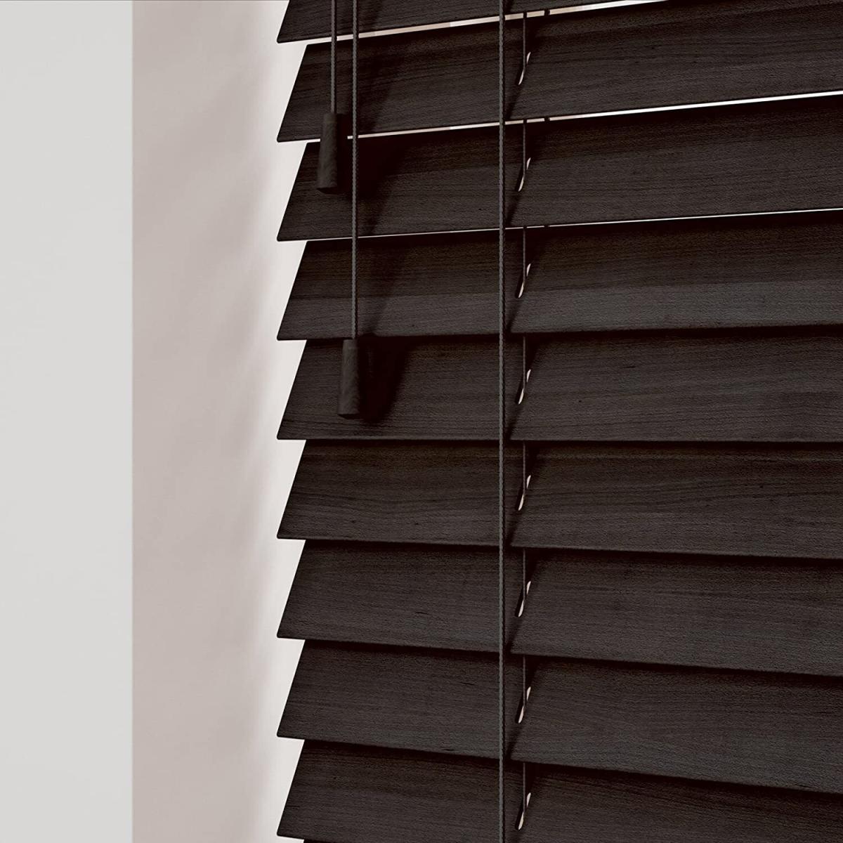 Wooden Venetian Blinds With Strings - Dark Brown Oak / 210cm