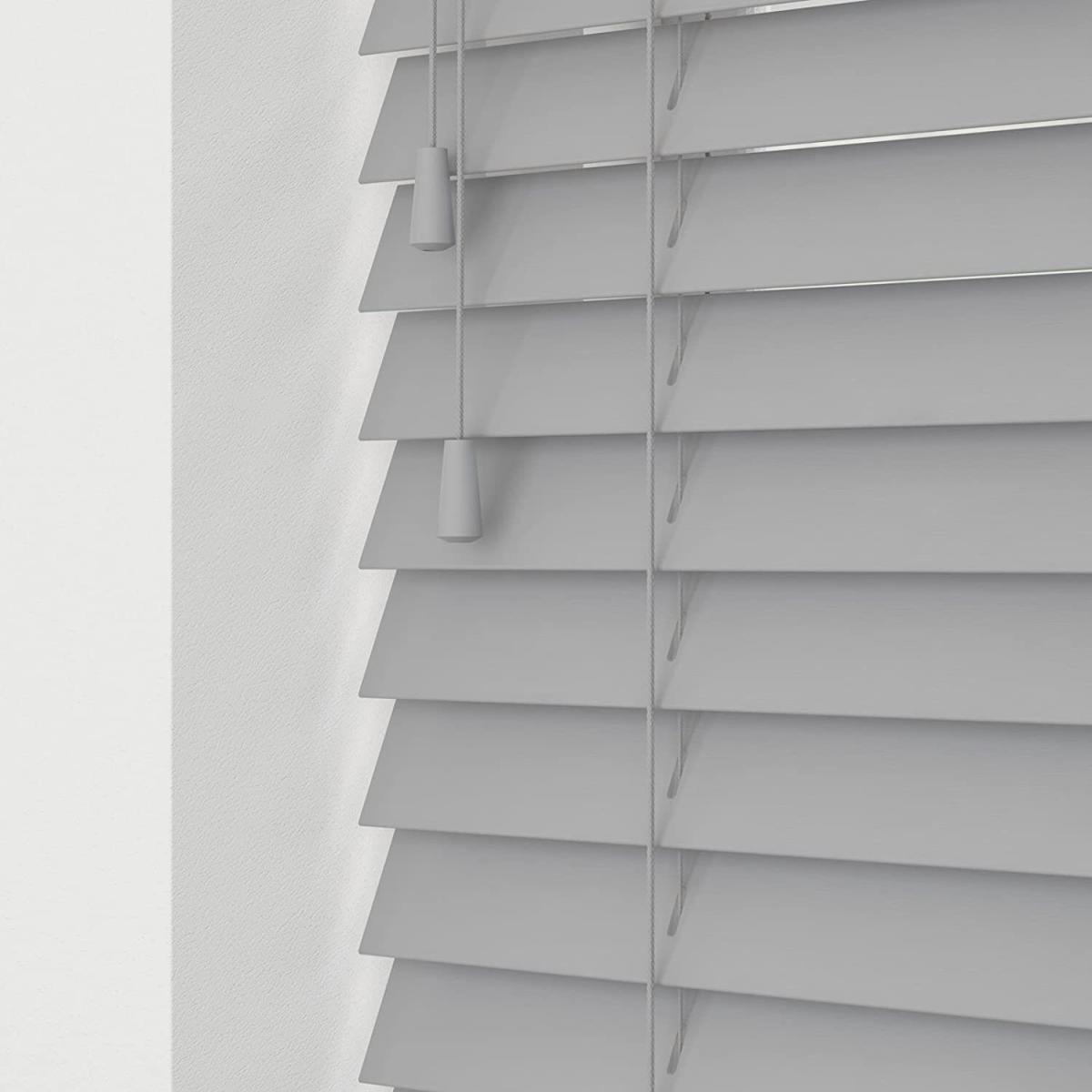 Wooden Venetian Blinds With Strings - Pebble Grey / 165cm