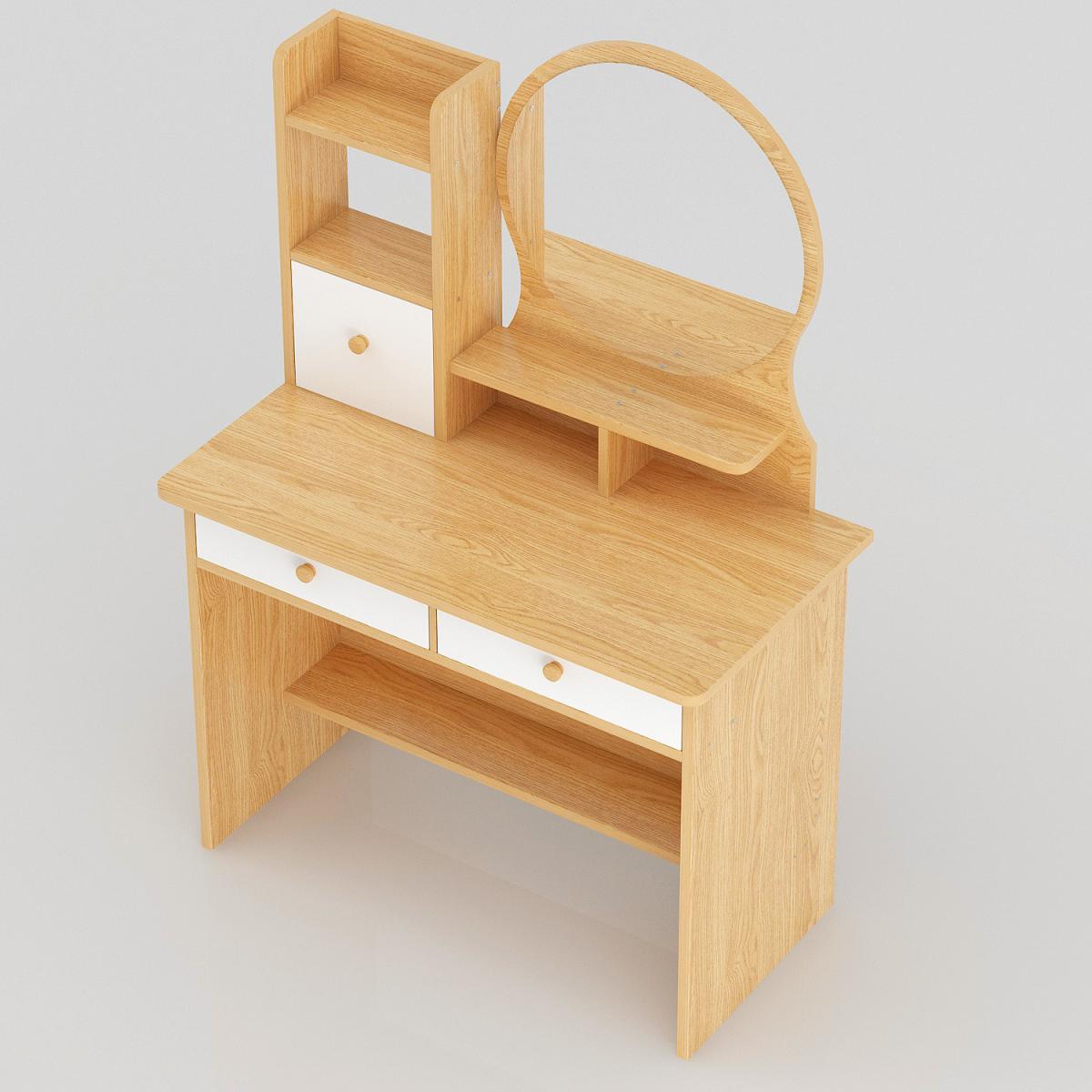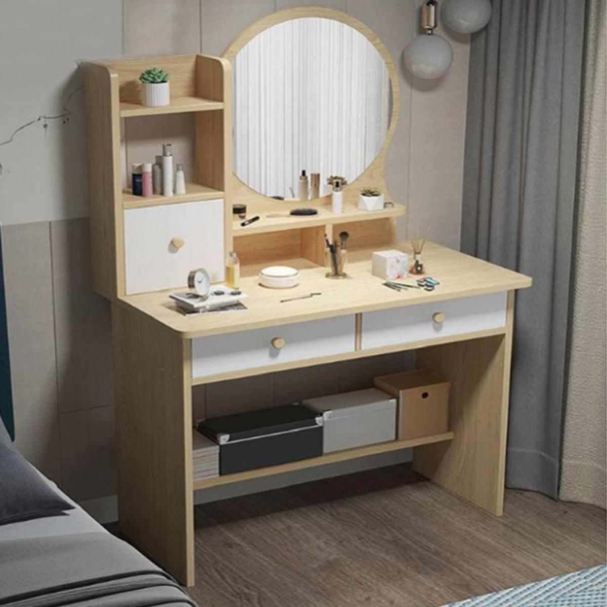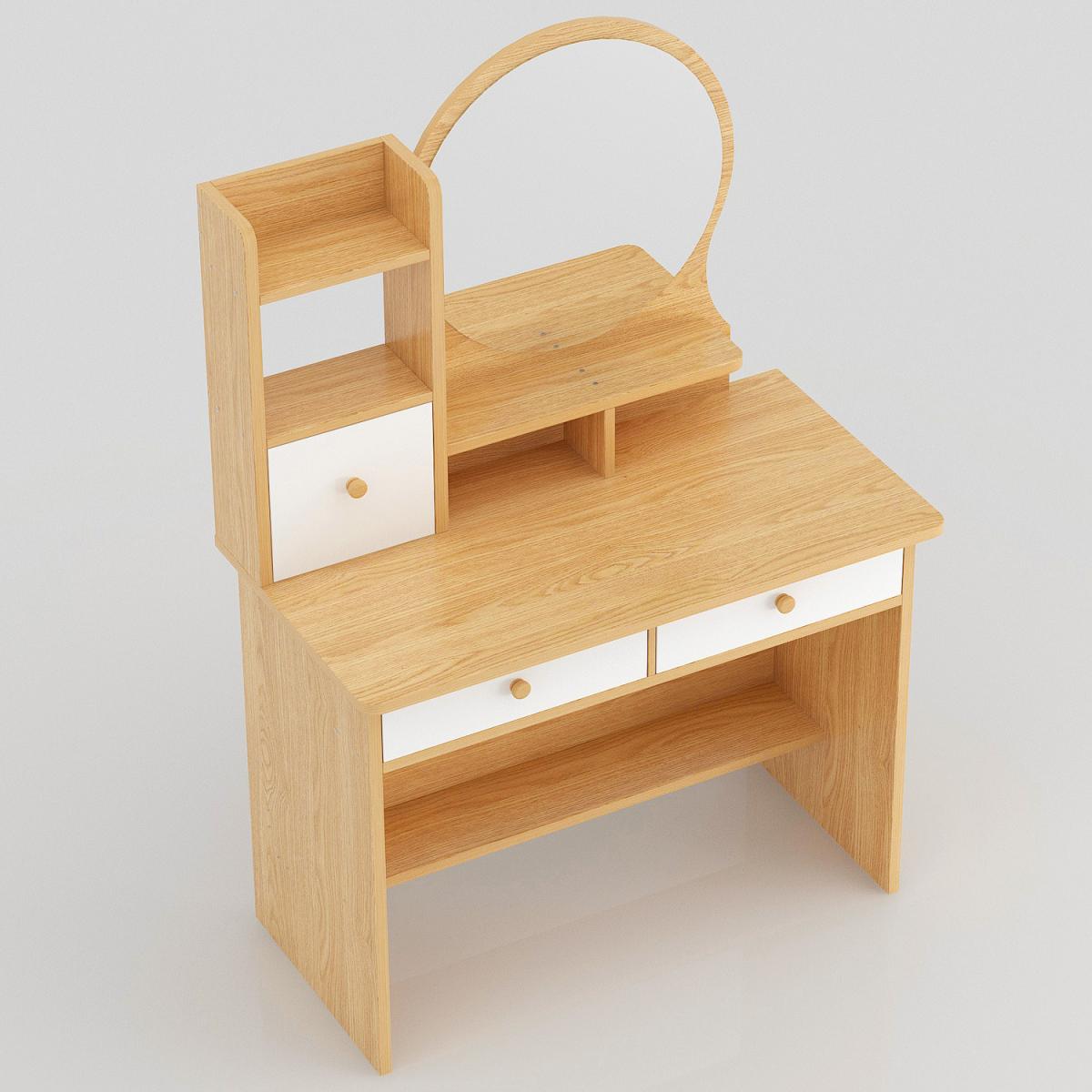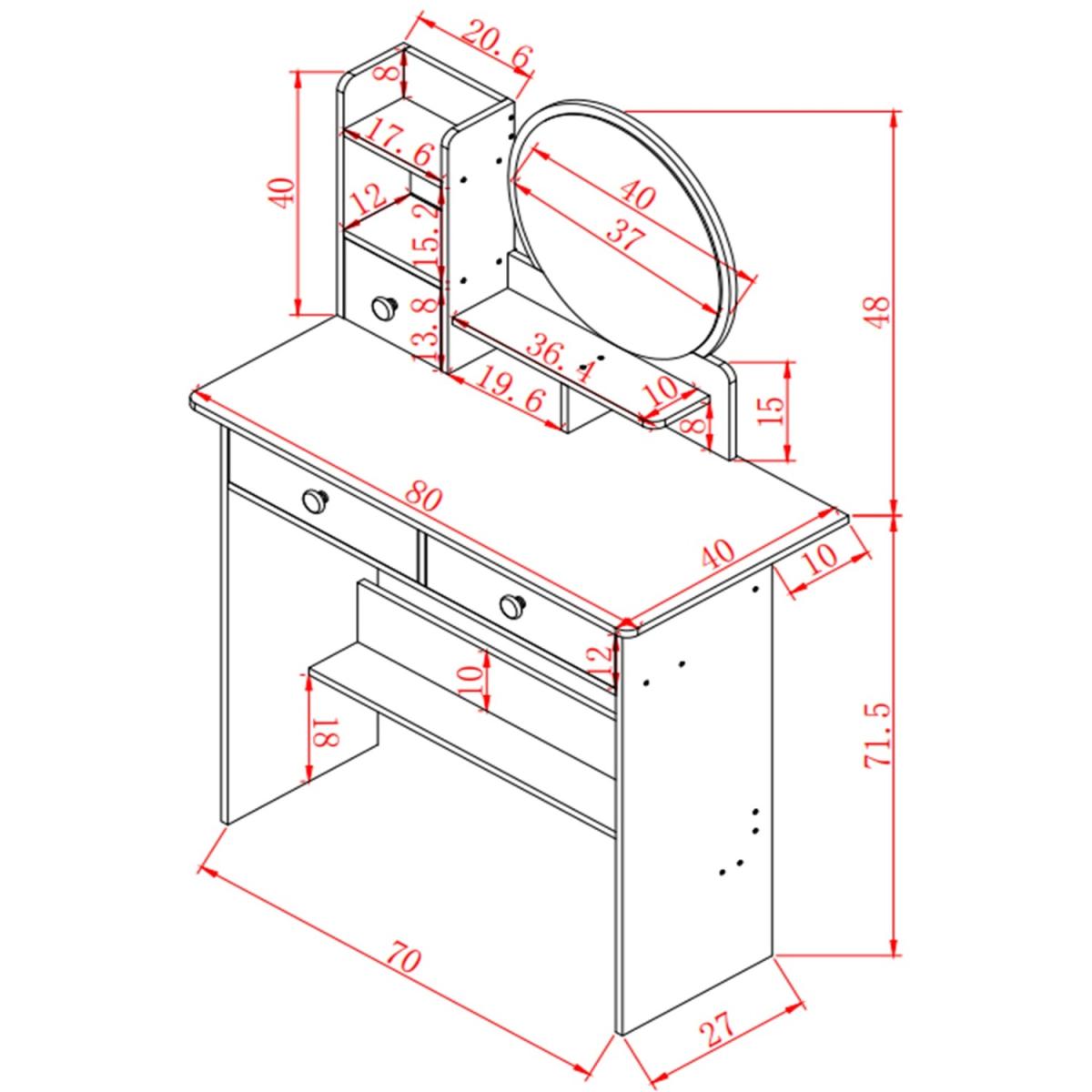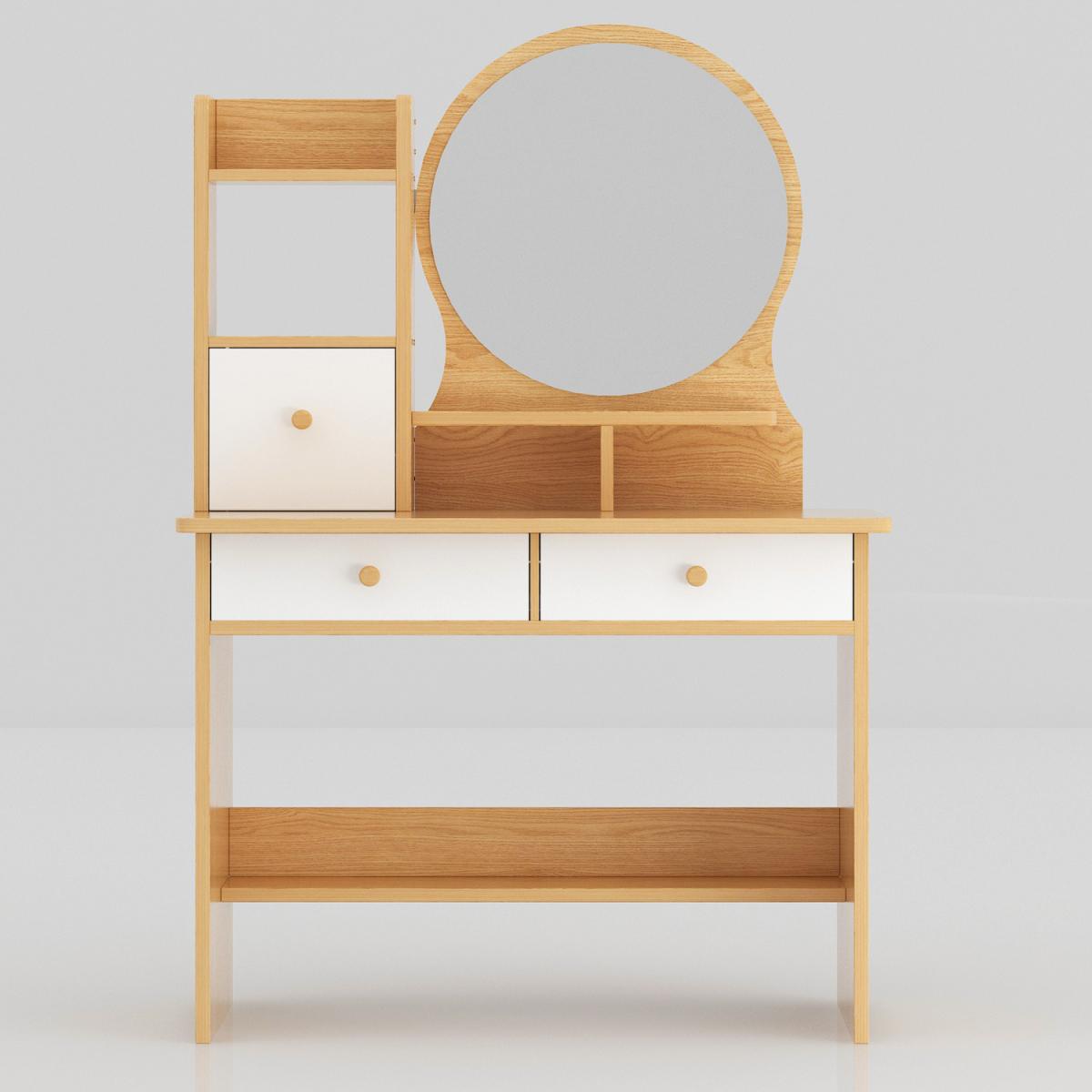 Wooden White Oak Dressing Table Make Up Vanity Desk With Mirror Storage Drawers Shelves Bedroom Furniture. You wake up in the morning and run from one room to another in a hurry because the face cream is on the table in the living room, the foundation is probably on the bedside table, eyeshadows are scattered in the bathroom, and the comb who knows! Maybe it fell under the bed? Then this will be your new routine you wake up in the morning and sit in front of this mirror. In the total calm, you can find creams, foundation, eyeshadows, comb, and other accessories well-organized in 3 drawers, various open compartments, the raised platform, and the large table top.