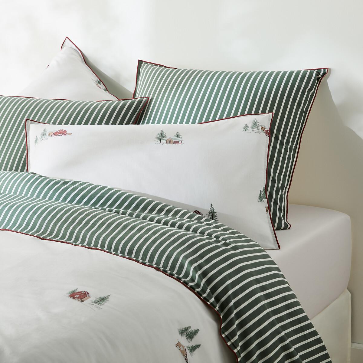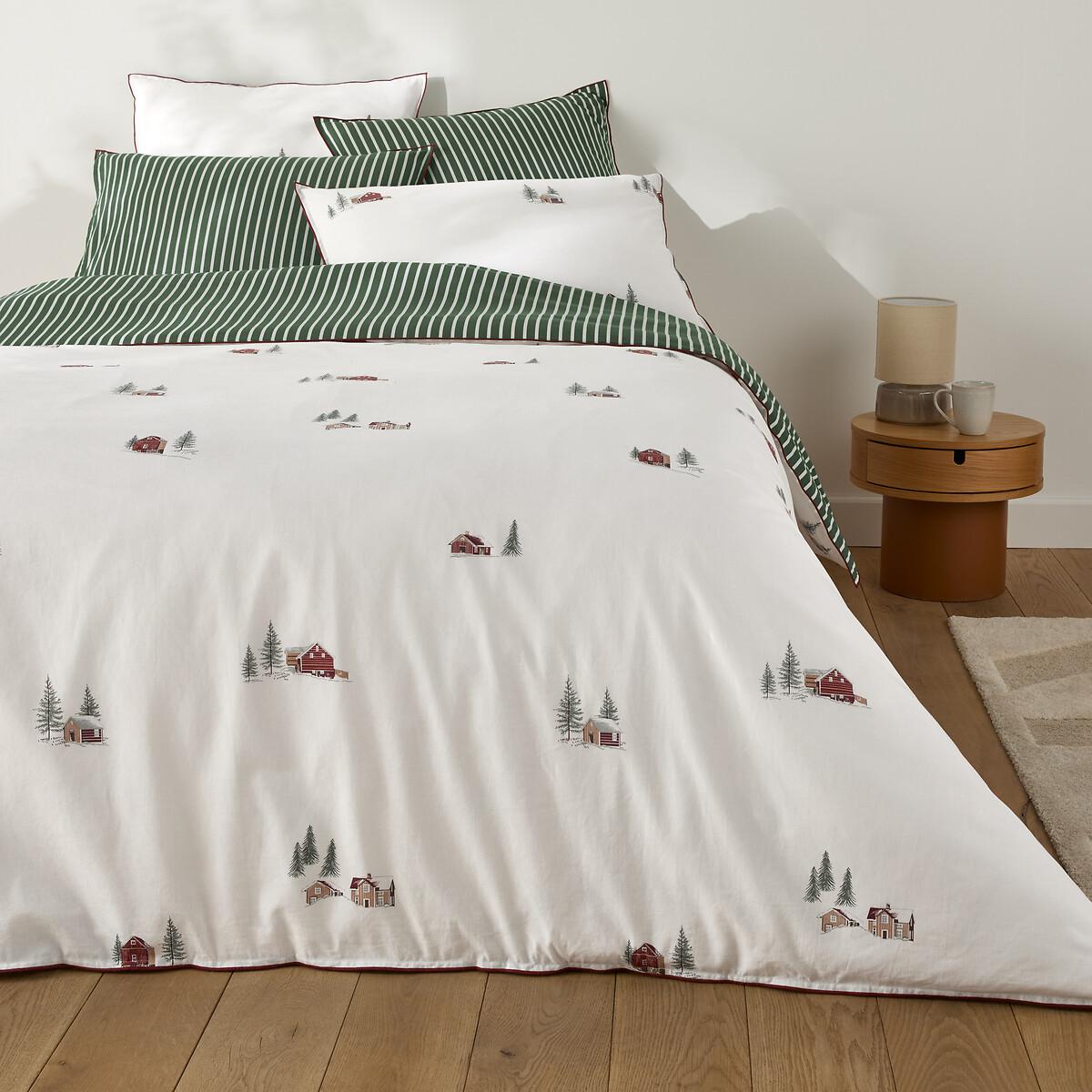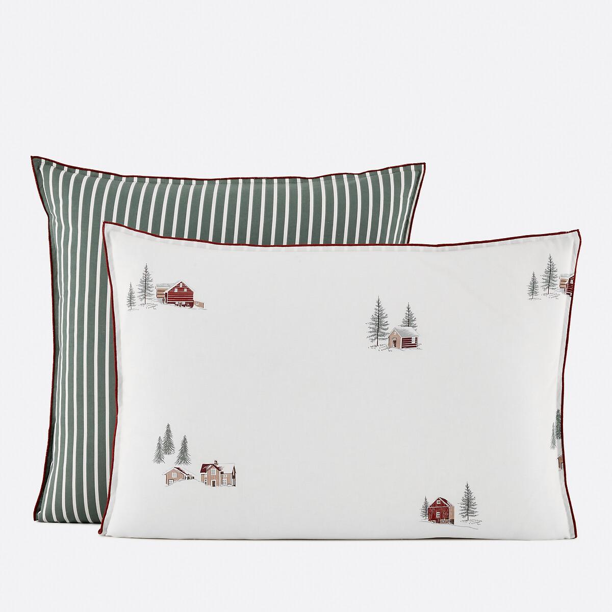 A winter getaway at the foot of the slopes, where skiers descend the snowy slopes amidst chalets and fir trees... A seriously warm and cosy decorative collection! Designed by La Redoute Intérieurs. The washed cotton has been delicately bleached during its manufacture. Soft, supple and comfortable, it softens over time. Its slightly wrinkled appearance is incredibly on-trend, and it does not require ironing. Product Details • 100% cotton • Washed cotton • 144 thread count • Chalet print on the front, striped back • Contrasting taped edging • Sold individually. As the seasons change, add your own personal touch by mixing the Woodhouse range with our plain washed cotton range from Scenario. Care Advice • Machine washable at 60°C • By washing your laundry at 40°C instead of 60°C, you limit energy consumption. Dimensions • 50 x 70cm: Rectangular pillowcase • 63 x 63cm: Square pillowcase • 65 x 100cm: Rectangular pillowcase • OEKO-TEX® Standard 100. Standard 100 certification by OEKO-TEX® tests textile products for harmful substances via an independent, international label.