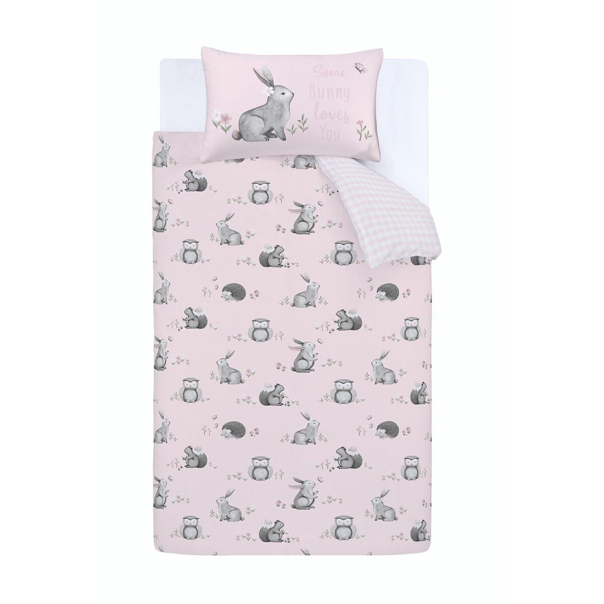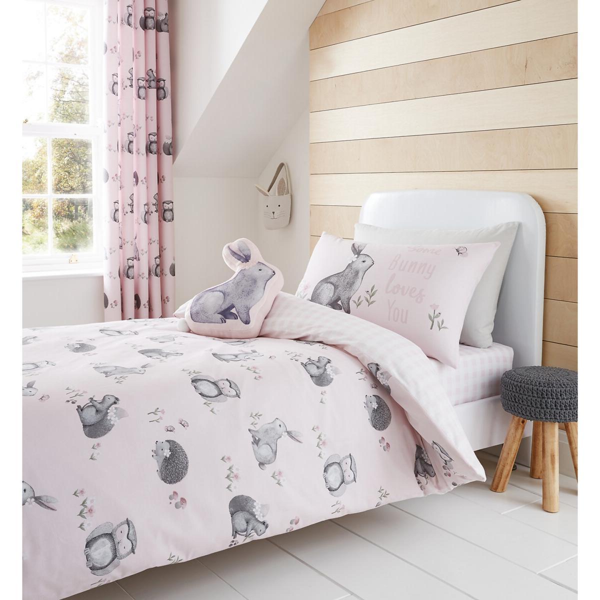 This beautifully illustrated woodland friends print features a contrasting pink gingham reverse and a cute slogan pillow design. This duvet set is fully reversible with a button fastening. Made from 52% Polyester 48% Cotton, requires minimal ironing. Machine Wash at 40 Degrees. Single includes 1 duvet cover & 1 pillowcase and Double includes 1 duvet cover & 2 pillowcases. This product will be dispatched by one of our trusted suppliers. You’ll be contacted by their selected courier about your delivery.