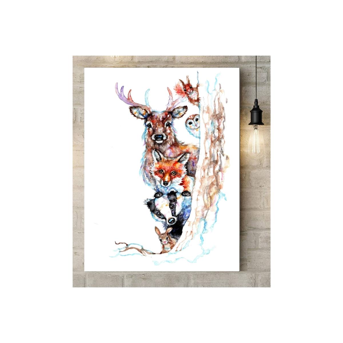 Inspired by the beauty of nature, Be Coventry originally painted this whimsical scene of a Woodland Crew in professional watercolours. Now recreated in print on a box canvas, this artwork will enhance any room in your home. The watercolour design is printed onto 260gsm Matte Polyester canvas, and attached to quality pine timber. The canvas is taped on the rear and is supplied with a wall-hanging kit.