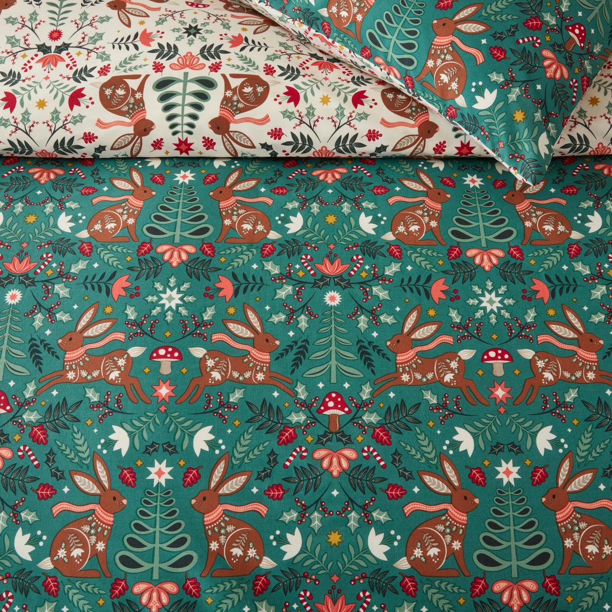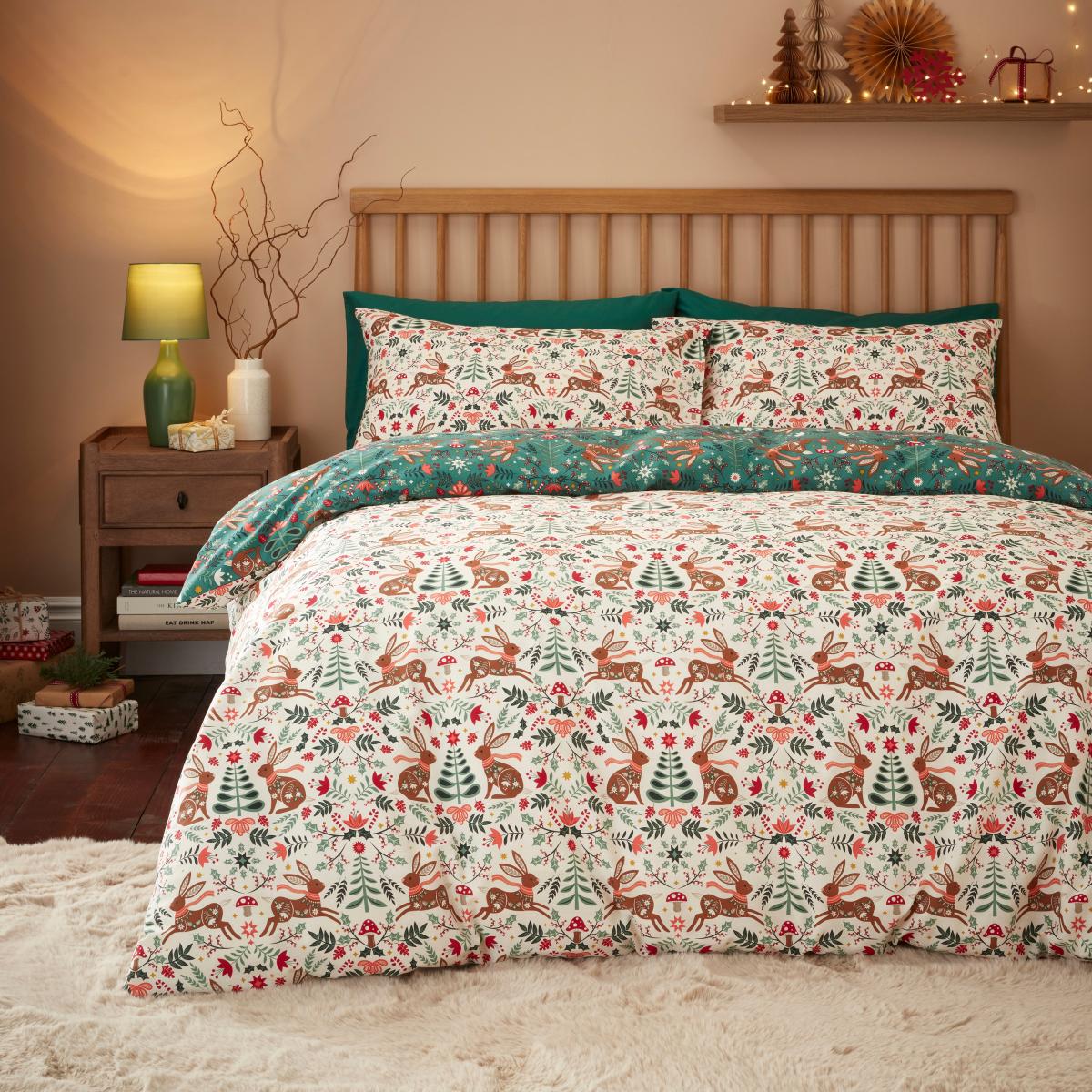 I love this woodland hares duvet set for its charming, nature-inspired print that brings a cosy, woodland feel to any bedroom. It works particularly well in neutral or rustic interiors where it can add a touch of pattern and warmth without overwhelming the space. Pair it with plain, textured bedding and wooden accents to keep the look balanced, or dress it up with additional natural elements like chunky knits or wicker baskets. Its muted cream base makes it versatile for both traditional and modern settings, offering a playful yet sophisticated touch that can easily be styled seasonally with accessories like soft throws or decorative cushions.