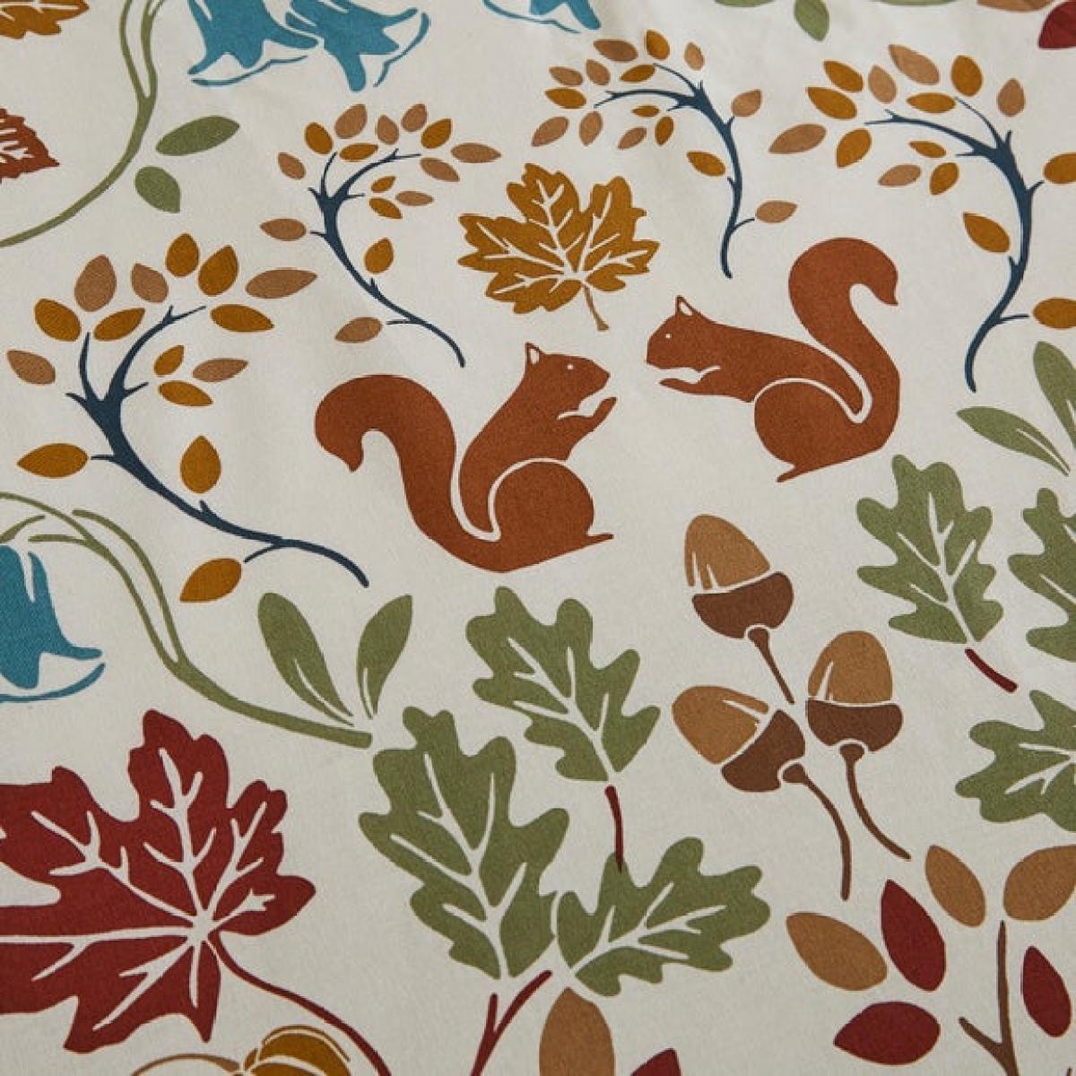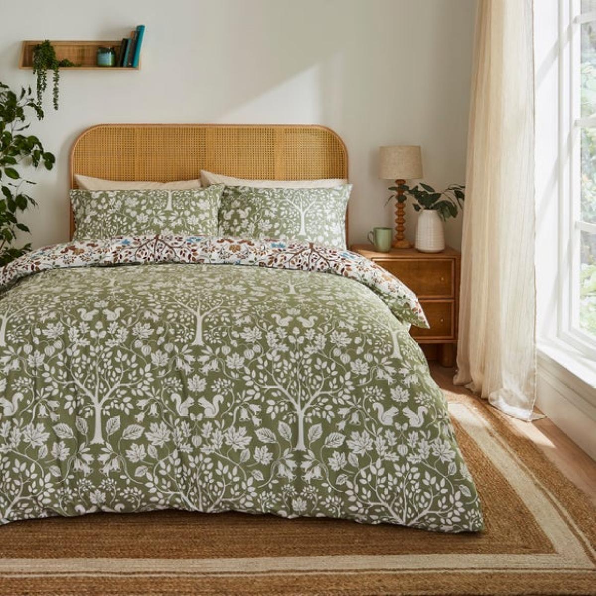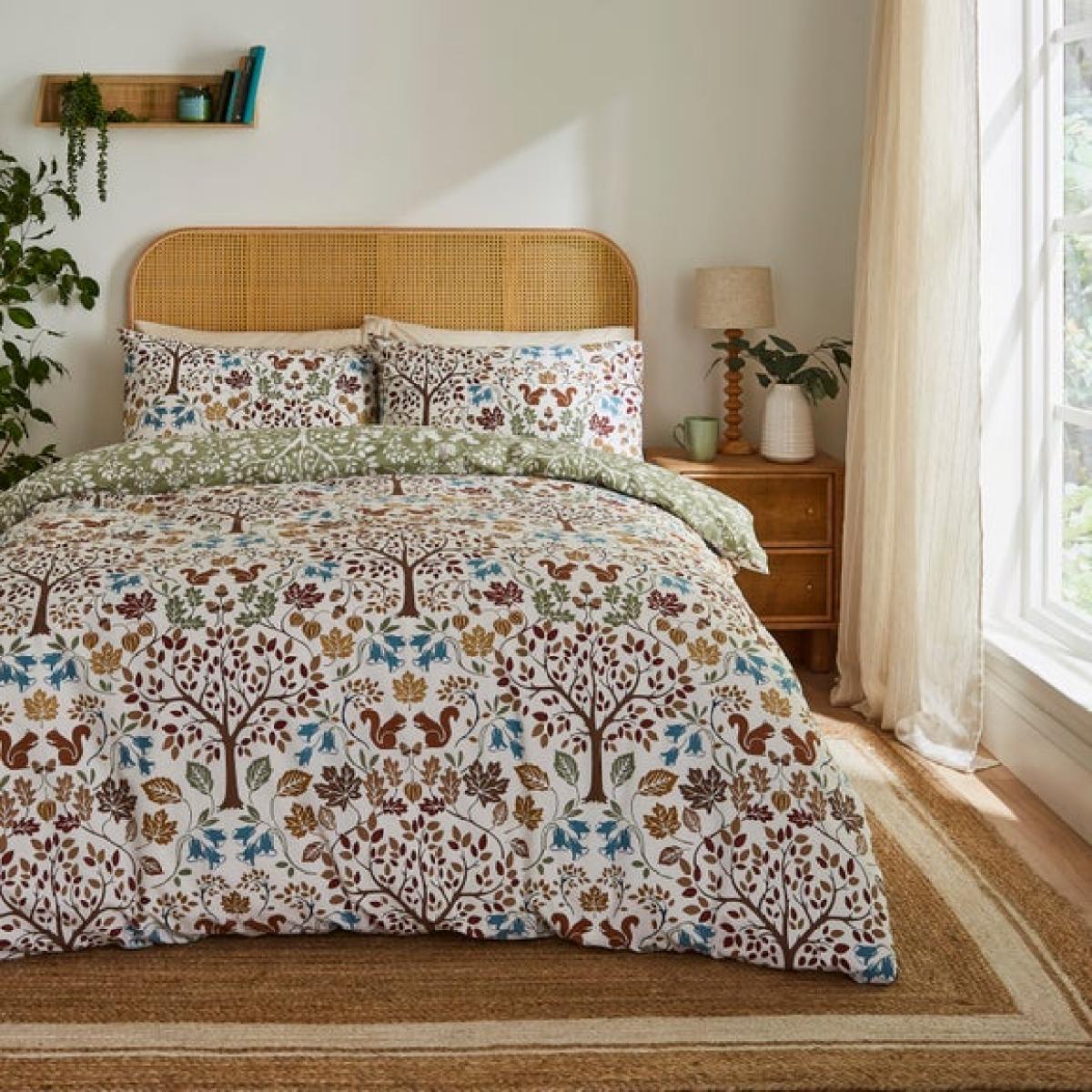 * Autumnal Woodland design * Super soft and durable polycotton composition * 144 Thread Count * Machine Washable Step into a serene woodland retreat every time you slip under the covers. This duvet set is inspired by the colours and calm of an autumn forest, with charming details that bring the outdoors in. It’s beautifully reversible, giving you two coordinating looks, and crafted from a soft, breathable polycotton blend that’s gentle on the skin and tough enough for everyday use. With easy-care washing, it’s the perfect way to add a seasonal touch to your space - without any extra effort.