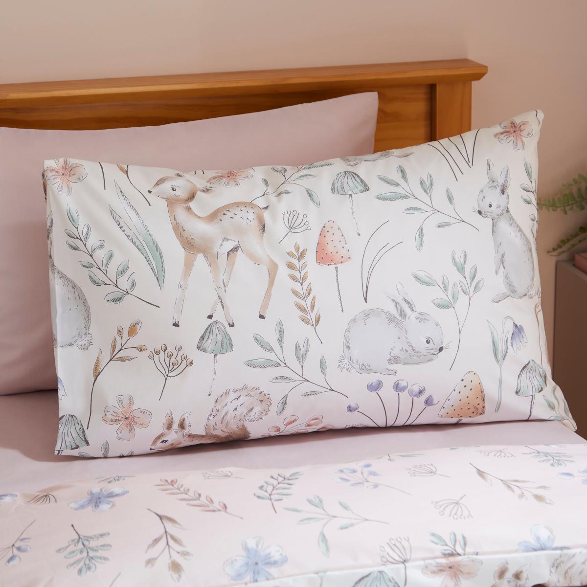 * Woodland Bedding Set* Hand Drawn Woodland Creatures* Reversible* Poly-Cotton Blend* Available in 3 Sizes Welcoming the adorable Woodland Reversible Pink Duvet and Pillowcase Set, a dreamy heaven for your little ones to snuggle up in! Bursting with hand-drawn woodland charm, this bedding set brings a sprinkle of enchantment to the bedroom. Reversible, this set offers double the fun and versatility – let your little ones choose their favourite side and watch their imaginations soar! Crafted from a soft and durable poly-cotton blend, this bedding is easy to wash and maintain, allowing more time for play and less time worrying about spillages! Available in three sizes – cot, single and double – you can find the ideal fit for your child’s sleep sanctuary. Complete with recycled plastic buttons, you can rest assured that this set will encourage a peaceful and restful nights sleep. Coordinating curtains are available to purchase. This product is OEKO-TEX MADE IN GREEN certified, meaning it was produced in OEKO-TEX S Te P certified factories - verifying environmental, social, and chemical standards in the facility. It has also been certified to OEKO-TEX STANDARD 100, the original safety standard for everyday confidence. To offer full visibility, the production stages throughout the supply chain can be traced.