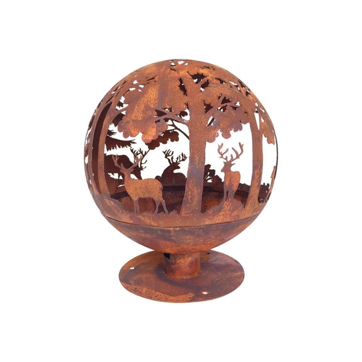 Our unique fire globe log burner by Fallen Fruits will certainly make your garden stand out. This stunning log burner boasts a beautiful woodland scene with deer and stags among trees. Fire bowls make fantastic log burners and garden decorations, so theyre ideal for creating a lovely glow during a BBQ or garden party. Suitable for outdoor use only.
