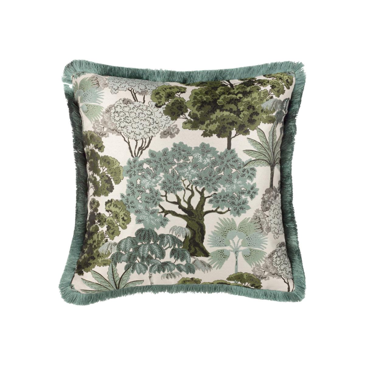 * Soft velevet reverse* Stunning tropical woven jacquard design* Features a luxe yarn fringed trim and hidden zip fastening* Matching curtains available for a coordinated look Immerse yourself in the beauty of nature with our Woodlands Cushion. These cushions feature majestic tropical tree species intricately woven on a jacquard base. The soft velvet reverse, luxe yarn fringed trim, and hidden zip fastening add a touch of opulence. Crafted from 100% Polyester fabric, these cushions are both soft and durable. Pair them with our Woodlands eyelet curtains to complete a stunning, coordinated look.