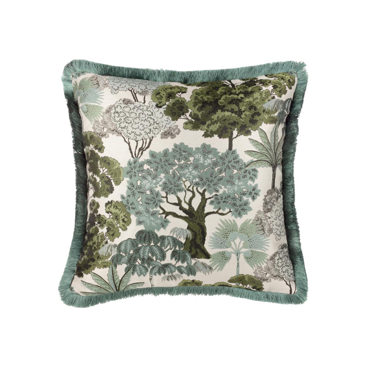 In exquisite detail, the Woodland cushion range displays a rich tapestry of natures finest woodlands. A variety of majestic, heritage and tropical tree species are intricately woven together on a prestigious jacquard finish. Paired with a velvet reverse and fringed trim, this timeless piece carries a certain reverence that makes any room radiant.