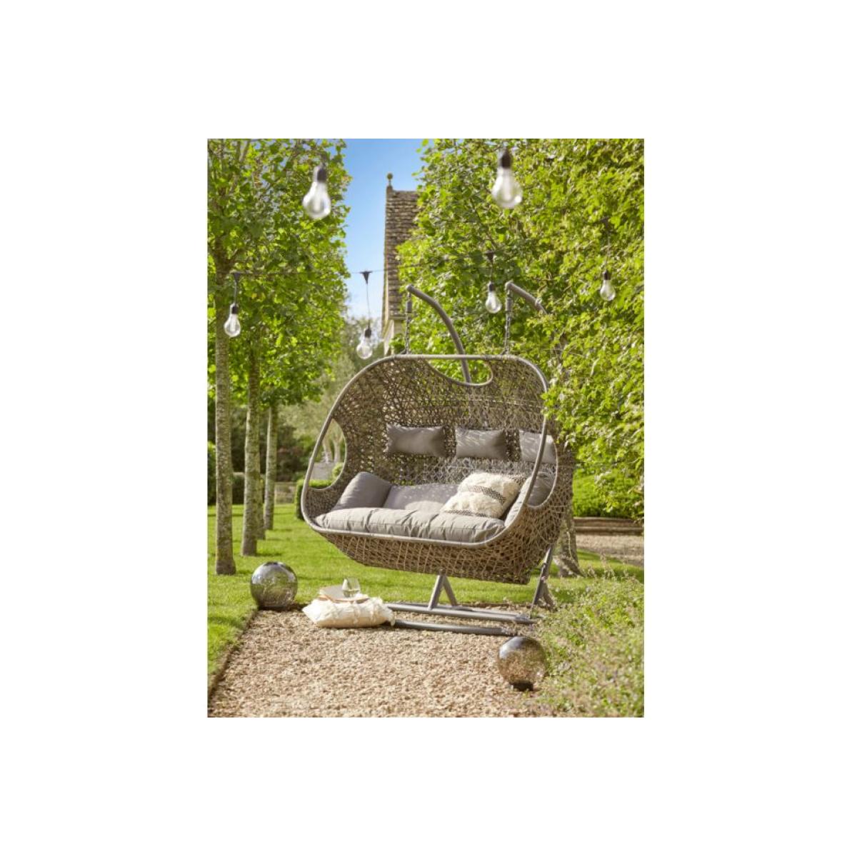 Are you looking for the ultimate egg chair for your summer relaxation? Then the Woodnock Trio Swing Seat Egg Chair is the solution for you!. Arriving in an attractive grey weave, it would make a stunning addition to any outdoor space and is suitable for indoor and outdoor use. The Woodnock is water repellent and weatherproof, but we would recommend covering up or bringing into a shed or garage during inclement weather, especially during the winter months. The iron frame is finished with 3 layers of powder coating for a durable finish. All screens vary in colour reproduction and whilst every effort has been made to display the colour as accurately as possible it is for guidance only.