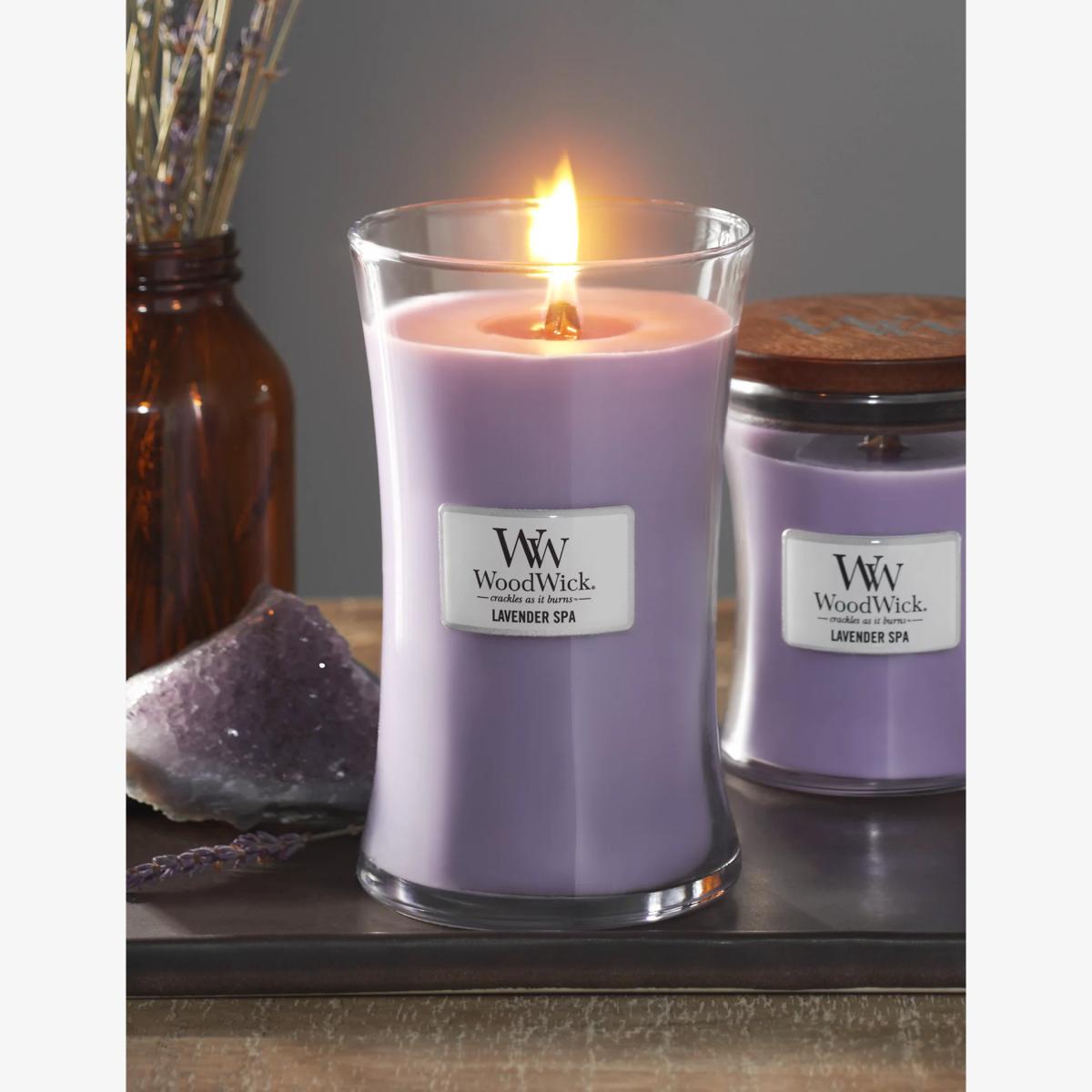 Woodwick Lavender Spa Hourglass Candle with Crackle Wick, Lavender