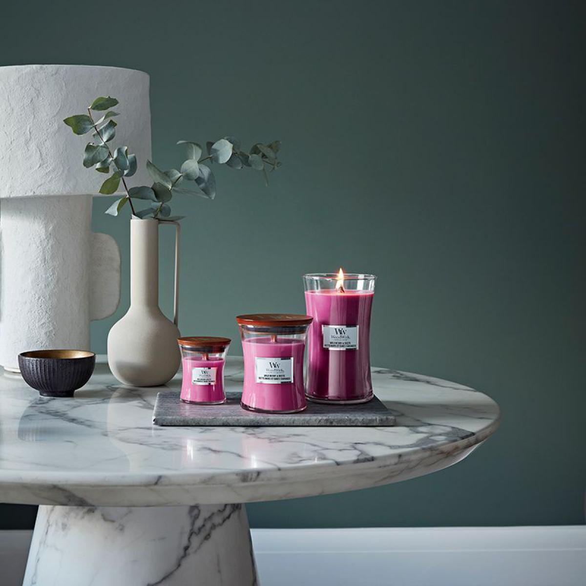 Large Hourglass Woodwick Candles fill your home with sophisticated scents and a soft crackle from a natural wooden wick that Crackles as it Burns. The distinctive crackle of Wood Wick candles is creaed by a patented PLUSWICK Innovation technology, designed to ensure a safe and consistent multi-sensory experience with faster fragrance and an optimal burn while fragrancing your home with the sound of a crackling fire. Fragrance Notes: Top: Mint, Wild Strawberry, Wild Raspberry. Mid: Beets, Orange, Winter Greens. Base: Patchouli, Oak, Orris. Scent: Carefully selected and tested to ensure candle fills the room with its long-lasting scent. Vessel: Flared design creates a wider opening for a fully melted wax pool that produces a more consistent fragrance experience. Includes wood style lid. Wick: The exclusive, patented wooden wick, Pluswick®Innovation, creates the sound of a crackling fire. Wicks are handcrafted for each individual candle and produce a generous wax pool with a fast fragrance release. Mini - 7cm x 7cm x 8.3cm Medium - 9.9cm x 9.9cm x 11.4cm Large - 10.2cm x 10.2cm x 17.8cm
