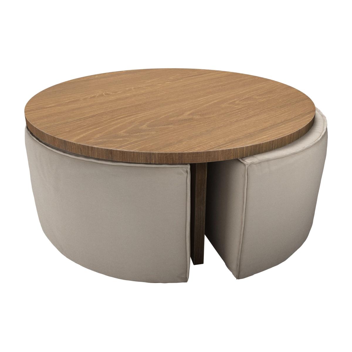 Woody Coffee Table and Nesting Stool Set in Elderflower Organic Smart Cotton