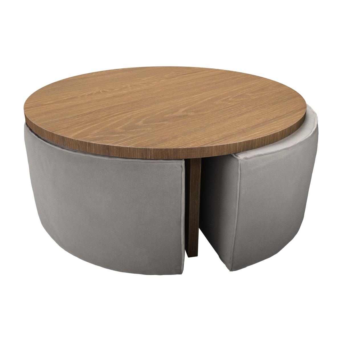 Woody Coffee Table and Nesting Stool Set in Nimbus Aquaclean Clever Chenille