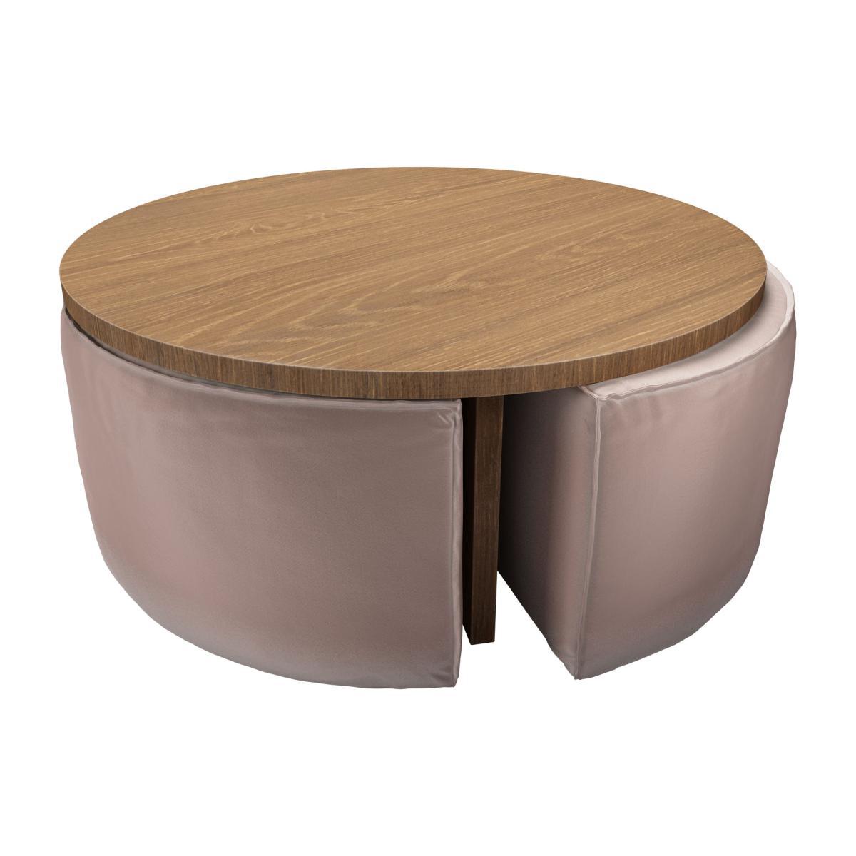 Woody Coffee Table and Nesting Stool Set in Orchid Cotton Matt Velvet - sofa.com