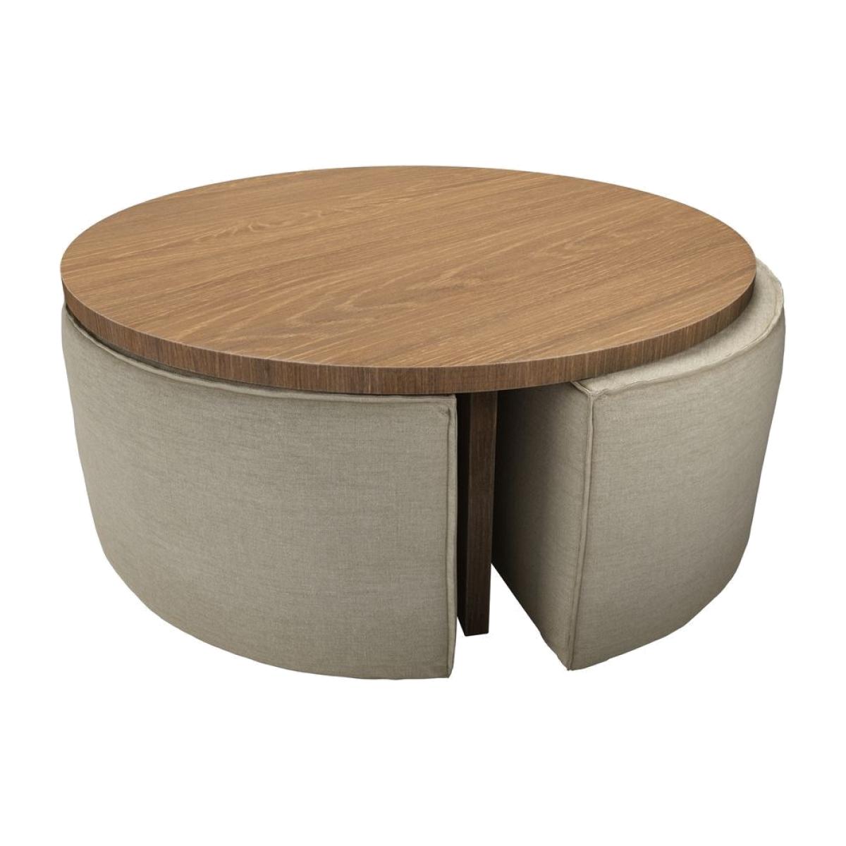 Woody Coffee Table and Nesting Stool Set in Pampas Hygge Smart Linen