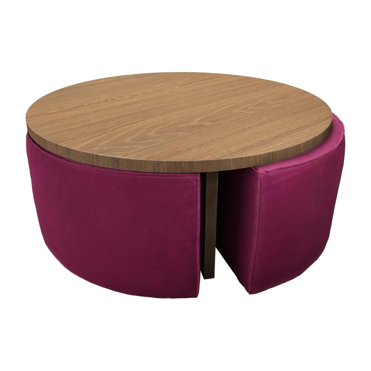 Woody Coffee Table and Nesting Stool Set in Persian Rose Smart Velvet