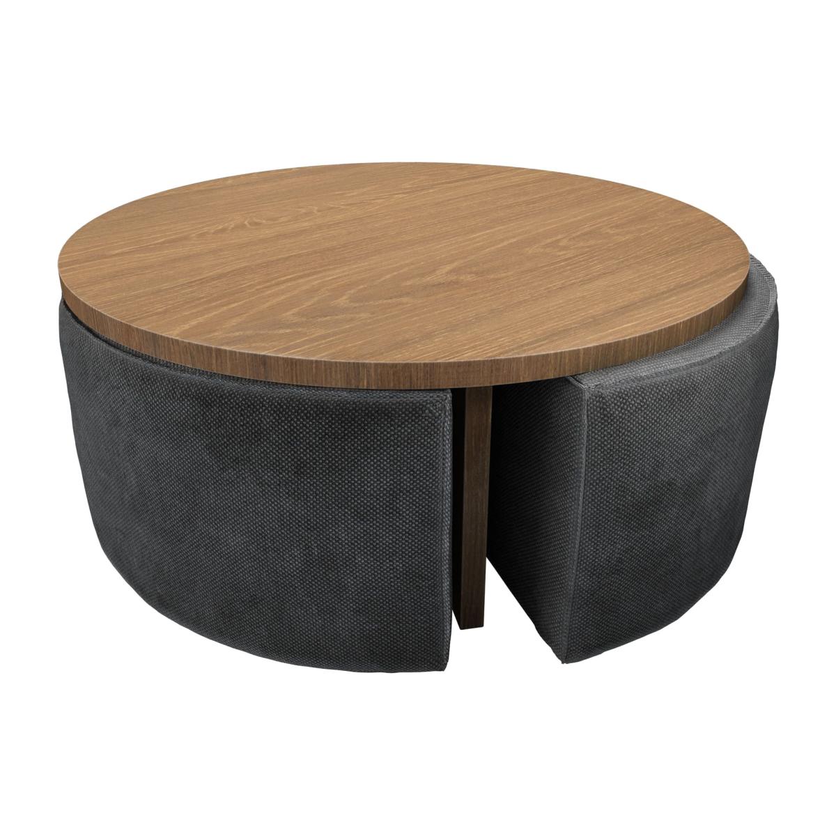 Woody Coffee Table and Nesting Stool Set in Raven Speckled Chenille