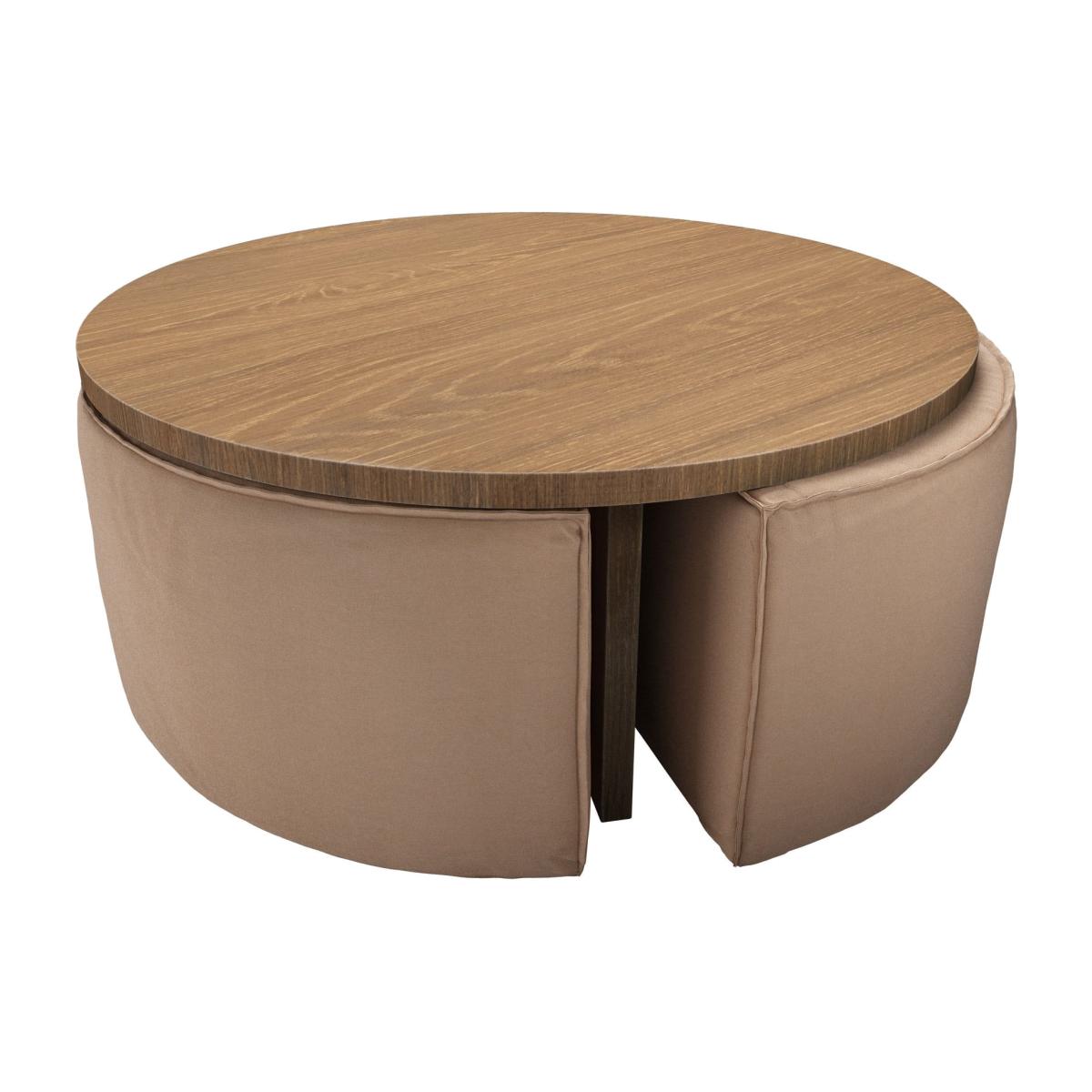 Woody Coffee Table and Nesting Stool Set in Rosewater Organic Smart Cotton