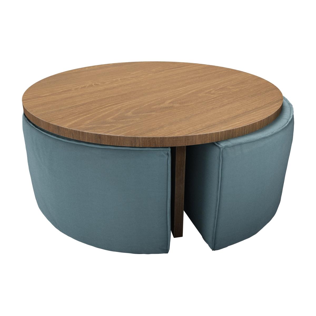 Woody Coffee Table and Nesting Stool Set in Tide Organic Smart Cotton