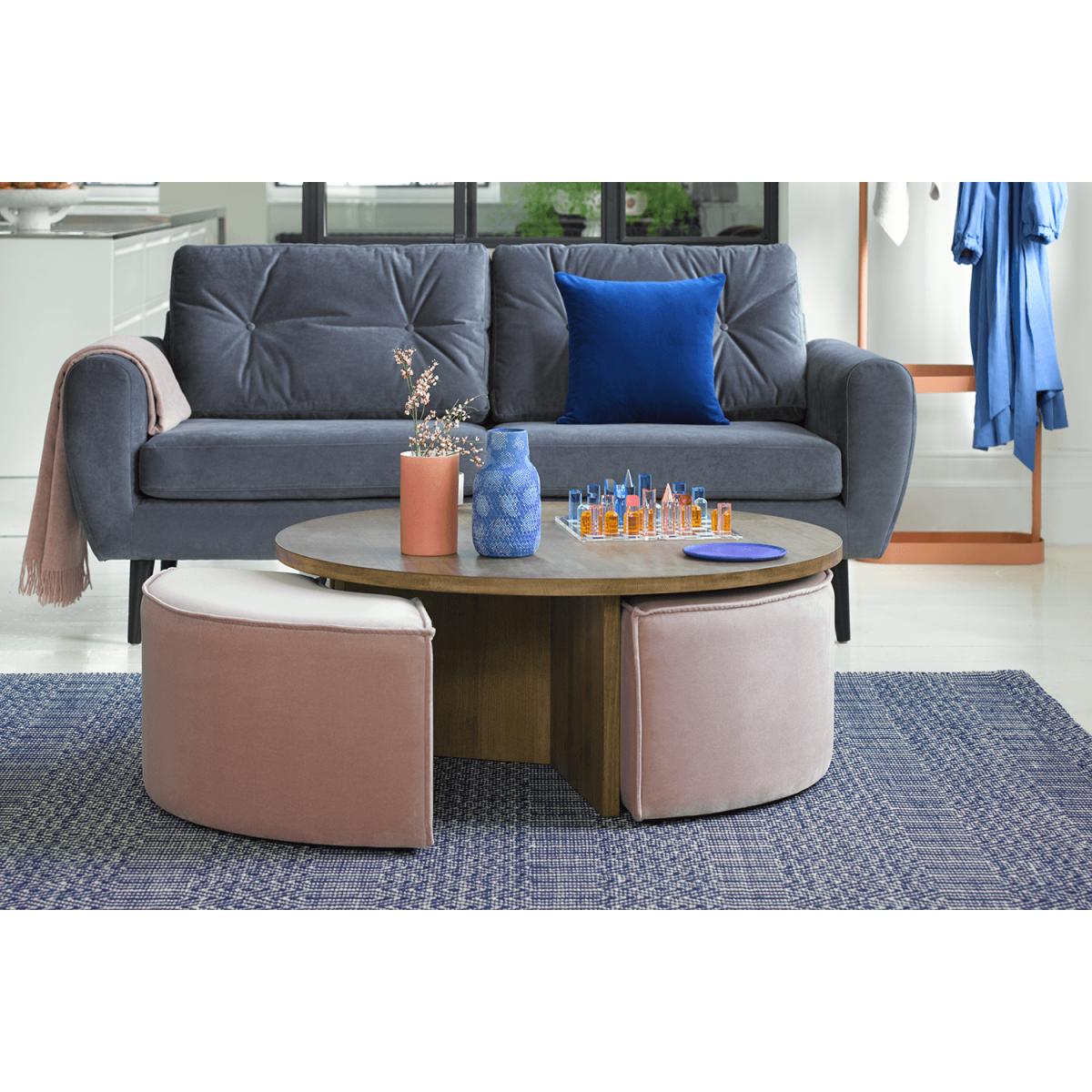 This multi-functional set is a clever choice for adding both practicality and a pop of colour to your living space. The coffee table’s compact, rounded design makes it ideal for smaller rooms or for creating a cosy corner, while the nesting stools provide flexible seating or side tables when needed. I love it for contemporary and eclectic interiors-its vibrant Wild Raspberry hue adds a cheerful touch that works brilliantly with neutral or contrasting tones. Styling tips include pairing it with natural textures like linen or wool to balance the bold colour, and leaving the top clear with a few books or a decorative tray for a neat look. Its playful yet functional design makes it a versatile piece that adapts easily to different living styles.