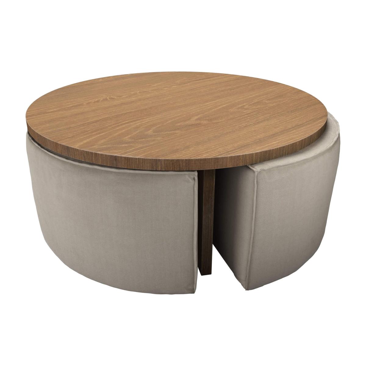 Woody Coffee Table and Nesting Stool Set in Wishful Vermeer Linen - sofa.com
