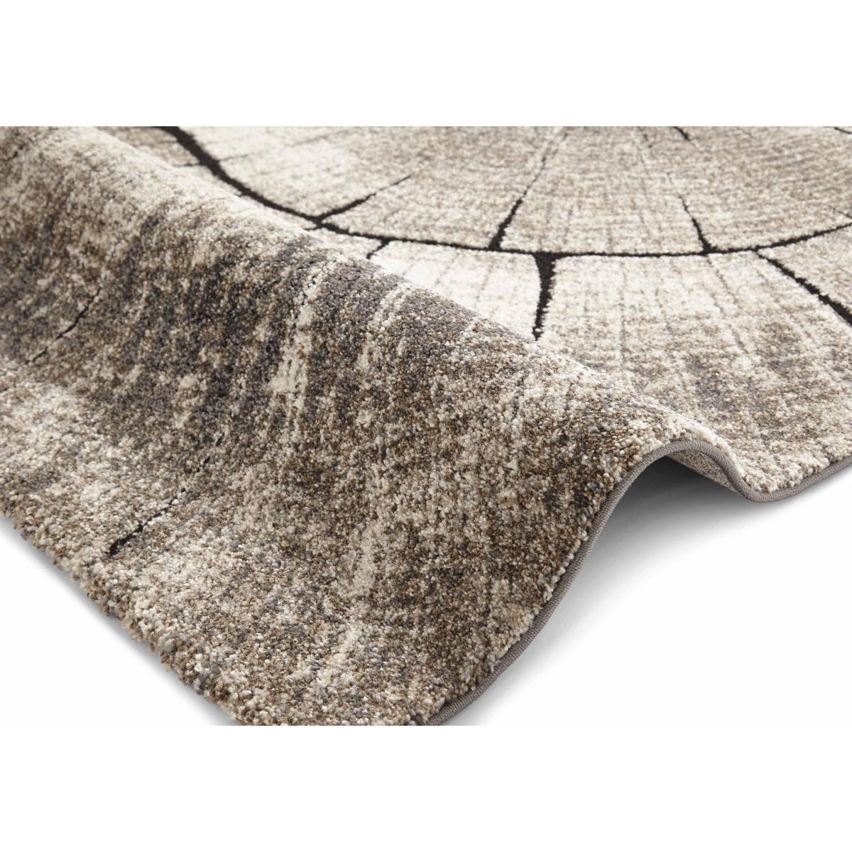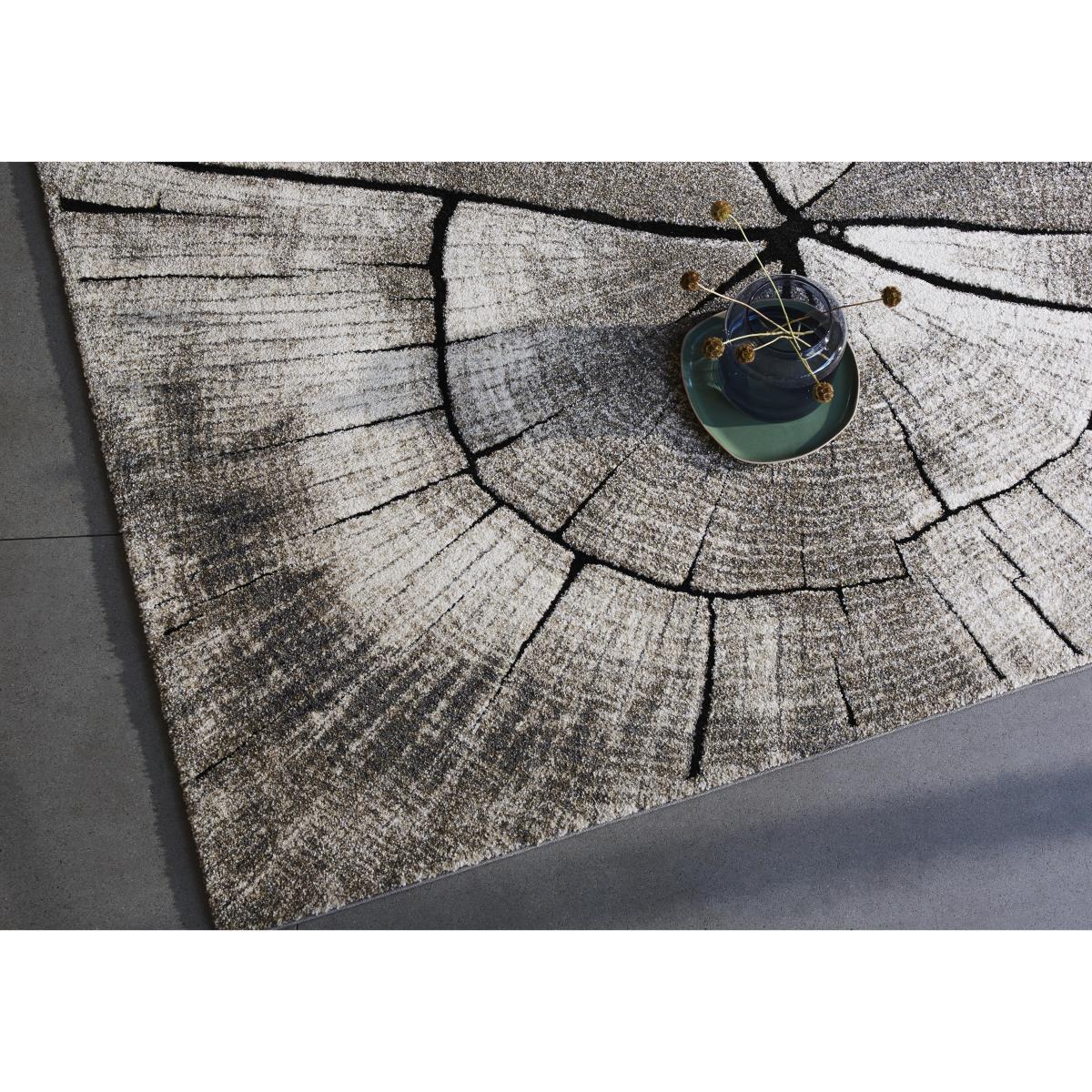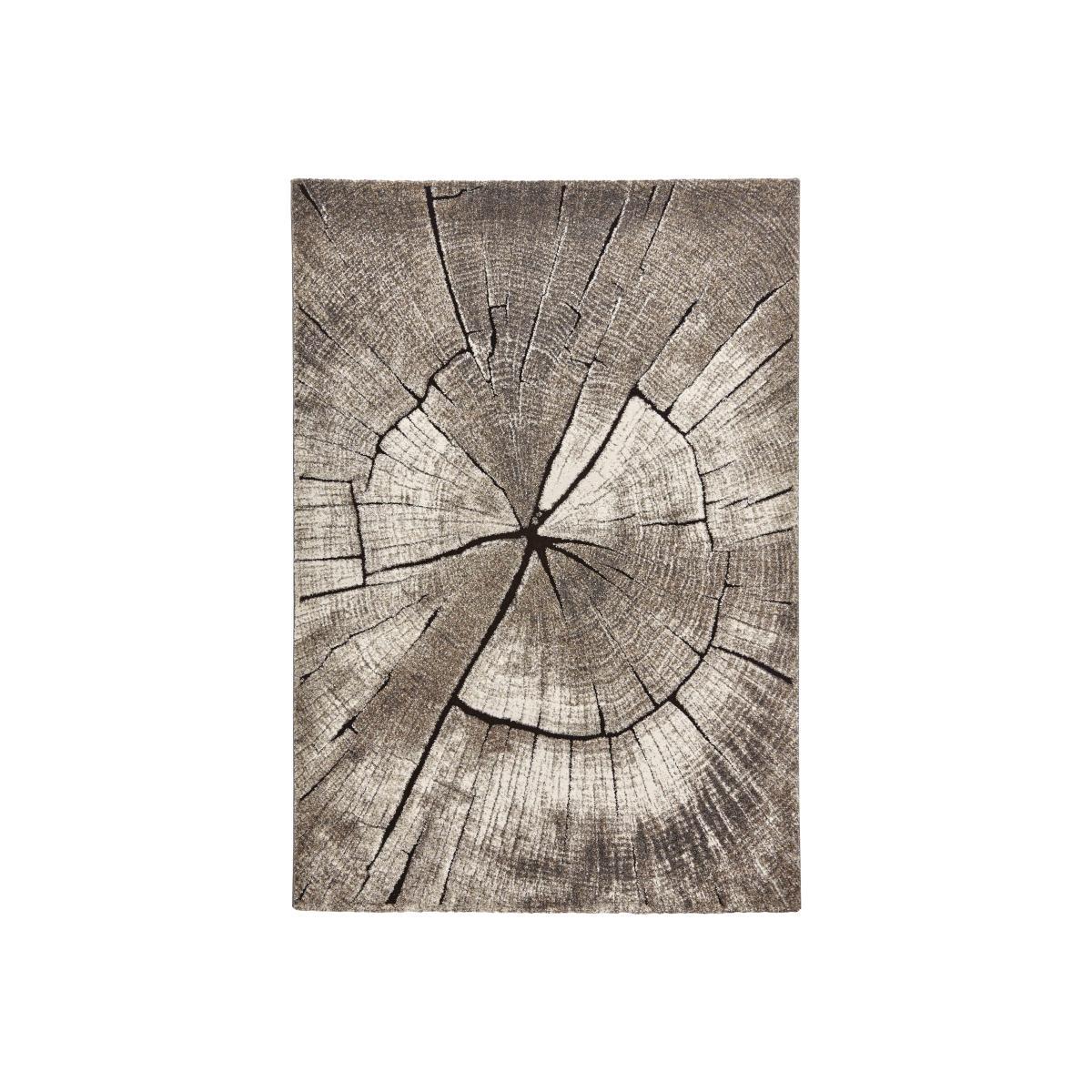 Bold and creative, the Woody large wood pattern rug features a cross section of what must be an ancient tree, so detailed that you can almost count its circling rings. Machine woven, this contemporary rug is made of durable heat set polypropylene. As well as being hardwearing, and suitable for any well-trafficked living space, it’s also colourfast and extremely soft underfoot. The neutral colour palette – shades of beige, cream and grey with black accents – ensures that this piece works with many interior design schemes and fits especially well in modern and minimal rooms. The Woody large wood pattern rug one of three rugs in the Woody rug range of wood-patterned rugs and is available in two different sizes.