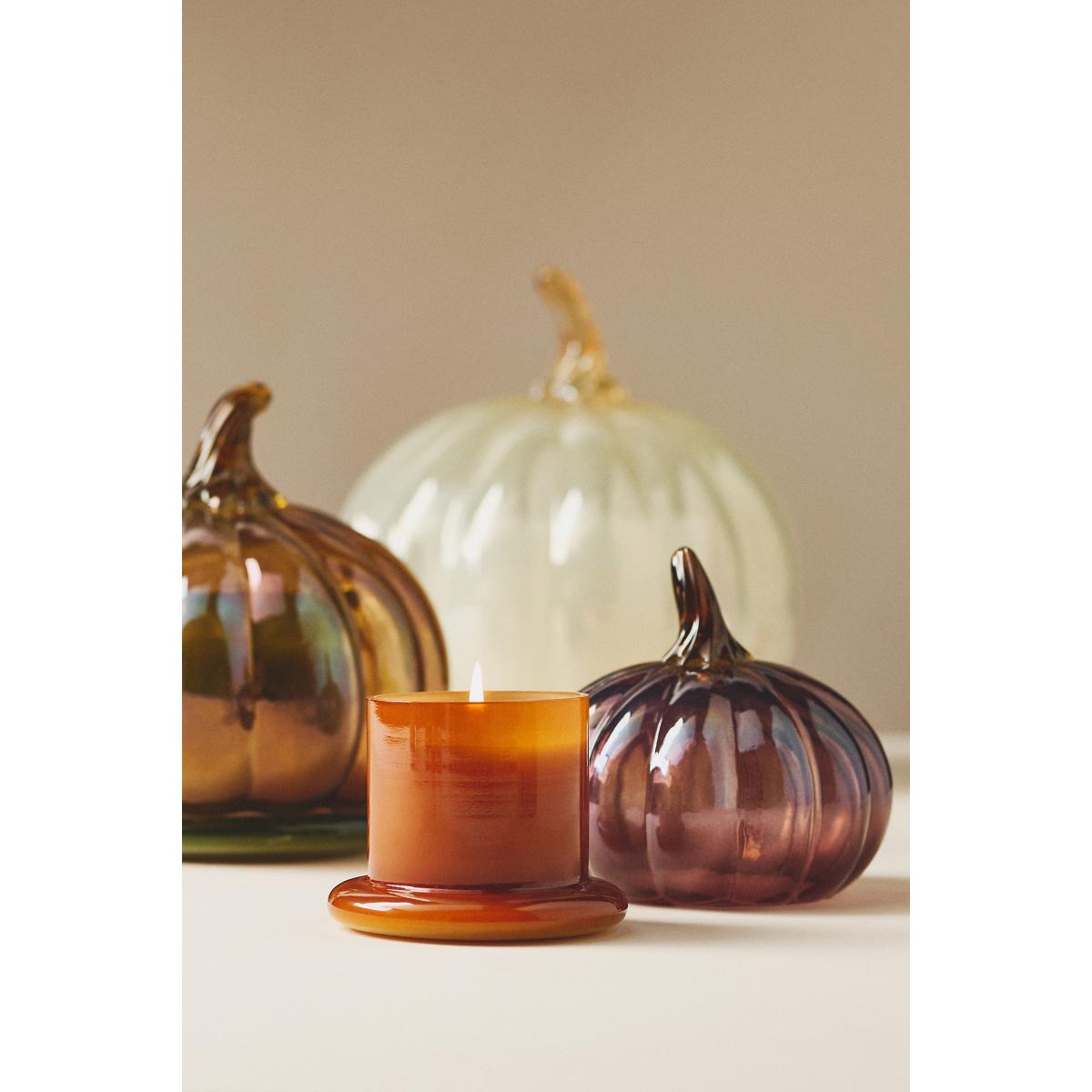 Celebrate the season's *best* scents with the *cutest* candle shapes. **White Birch & Pumpkin (Woody):** The welcoming allure of soft, comforting flannel folded with the warming nuances of freshly grated nutmeg and crushed cinnamon bark layered amidst glowing, ambered cedarwood. *For the best burn experience, keep the following in mind:* * The first time you light your candle, allow it to burn until the wax pool melts all the way to the edge; for a larger candle, this may take several hours. Wax has "memory," so if it is extinguished with a partial pool, that will prevent a full, even pool from forming in the future. * Trim your wick each time you light the candle, removing any "bloom" from the previous burn. We recommend lighting a wick that is 1/4-1/2" in length. * Ensure that your candle is placed on a heat-safe surface. * Do not allow wick trimmings, dust, or other materials to accumulate in the wax pool. * To ensure safety and longevity, be sure to check the bottom of your candle for additional instructions, including details on when to discontinue use. * 18-hour burn time * Hand-poured palm wax blend; fil-tec candle wick * Glass vessel * Imported