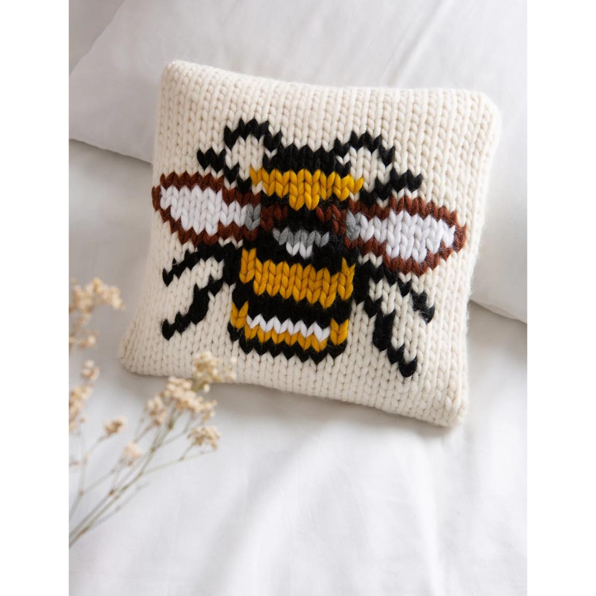 Wool Couture Bee Cushion Cover Knitting Kit - Cream, Cream