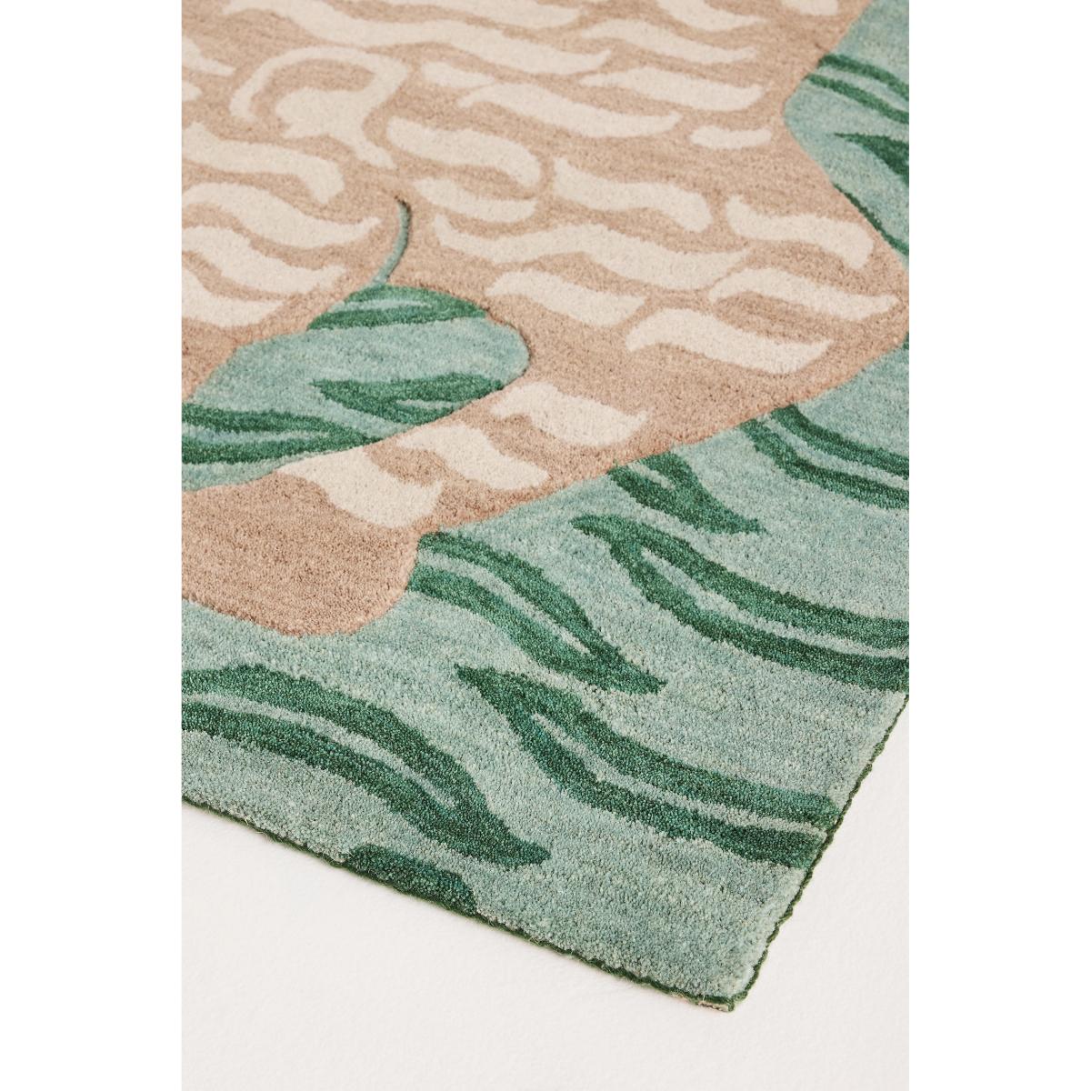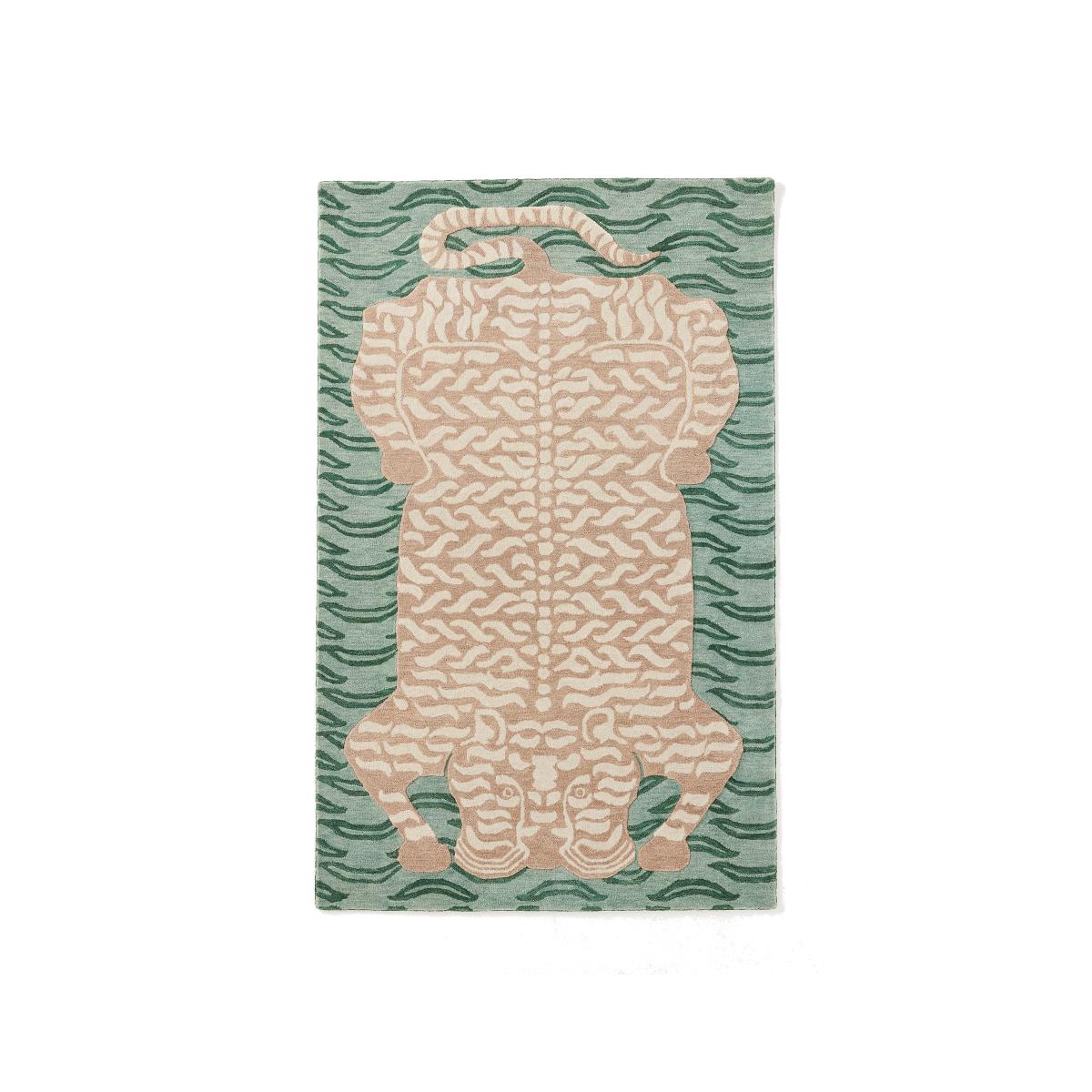 In the style of traditional Tibetan Tiger rugs, a tiger pops out amongst a backdrop of pink on this hand-tufted wool piece, offering a storied approach to introducing colour into your space. * 100% hand-tufted wool; cotton, polyester, other fibers backing * Using a tufting tool, yarn is passed through a frame-stitched fabric backing on which a pattern has been drawn * Tufted rugs are known for their thicker pile, offering a soft and luxurious feel underfoot * The tiger motif is sculpted above the base, creating a subtle variation in pile height * Suitable for medium-traffic areas * Rug pad recommended to prevent slippage and protect your floor * Rotate periodically for even wear * Shedding is a normal process that occurs with natural fiber rugs; it should subside after 6-8 weeks with regular vacuuming * To avoid damage, vacuum with the beater bar off * Do not pull loose yarns; use scissors to trim * Gently blot spills immediately with a clean, white cloth. Avoid soap and cleaning products, as they could damage or fade the rug * Professionally clean for best results * Imported